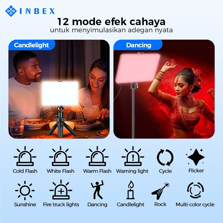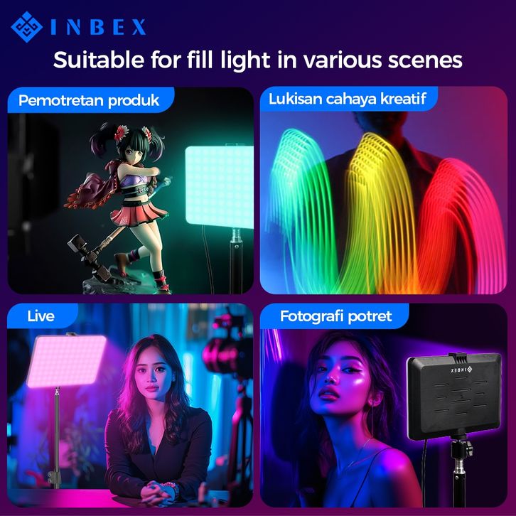 Lampu Foto RGB Lighting 8 inci Konten Kreator Sorot Lighting Studio Video Live Vlog INBEX