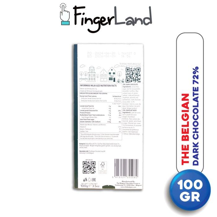 THE BELGIAN Dark Chocolate 72% 100 gram Cokelat Hitam