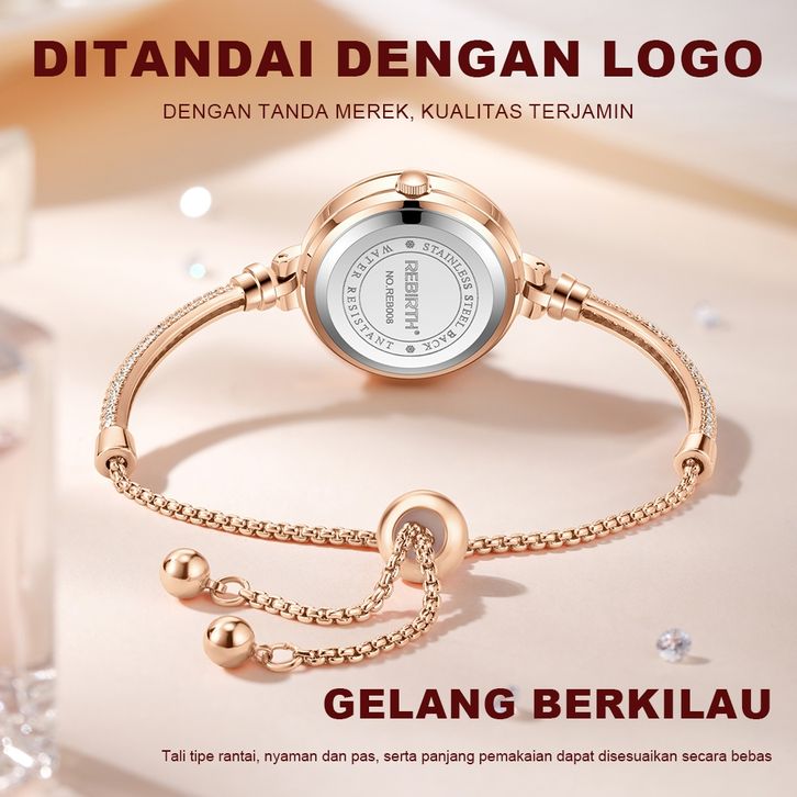 JAM TANGAN WANITA ANTI AIR GELANG GAYA BERLIAN TALI MERENGGANG JAM TANGAN CEWEK REBIRTH ORIGINAL TERLARIS