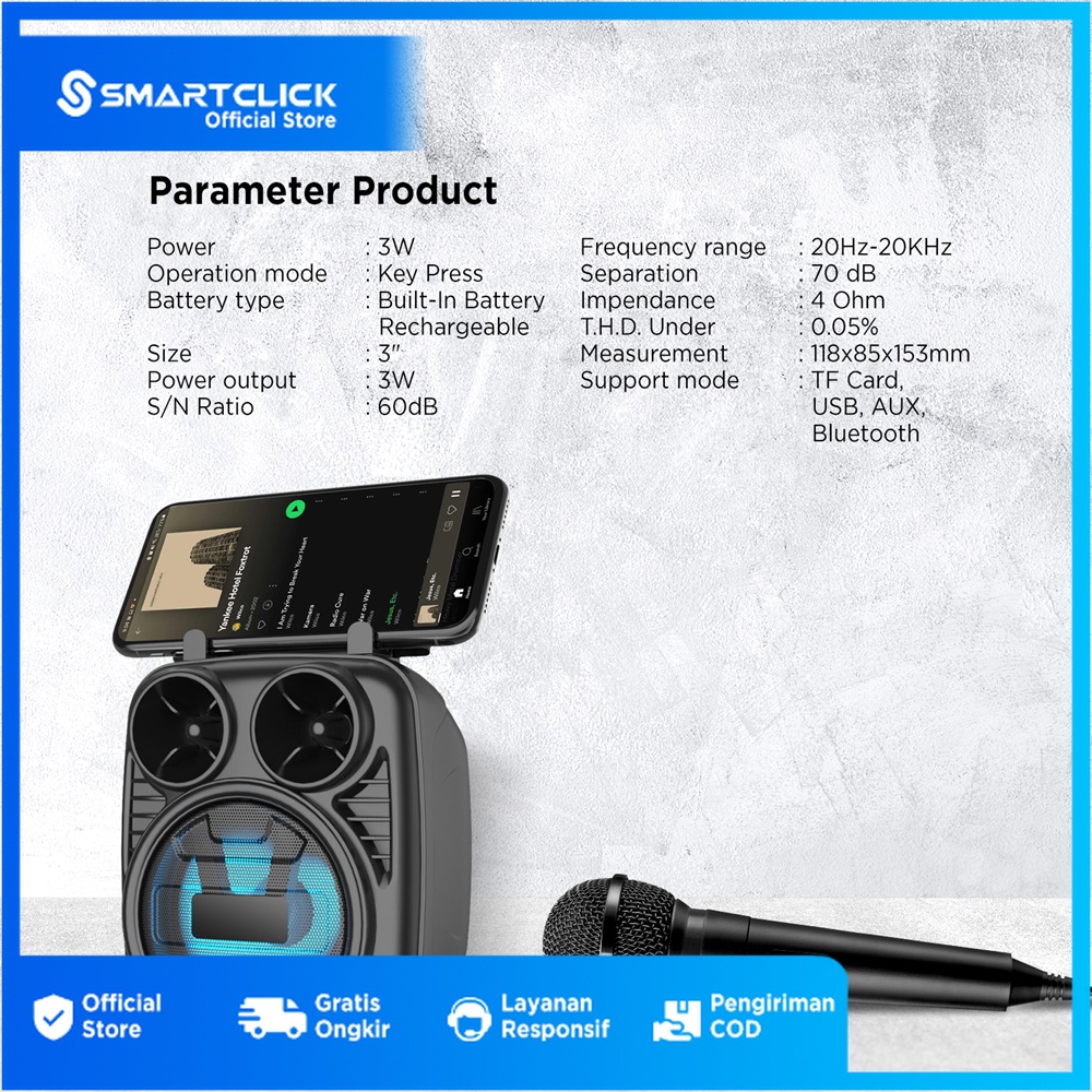 Speaker Portable Bluetooth LED 3 Inches Mobile Phone With Mic