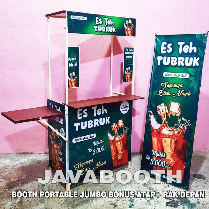 Booth Portable Kayu Jumbo Pakai Atap Bonus Rak Depan