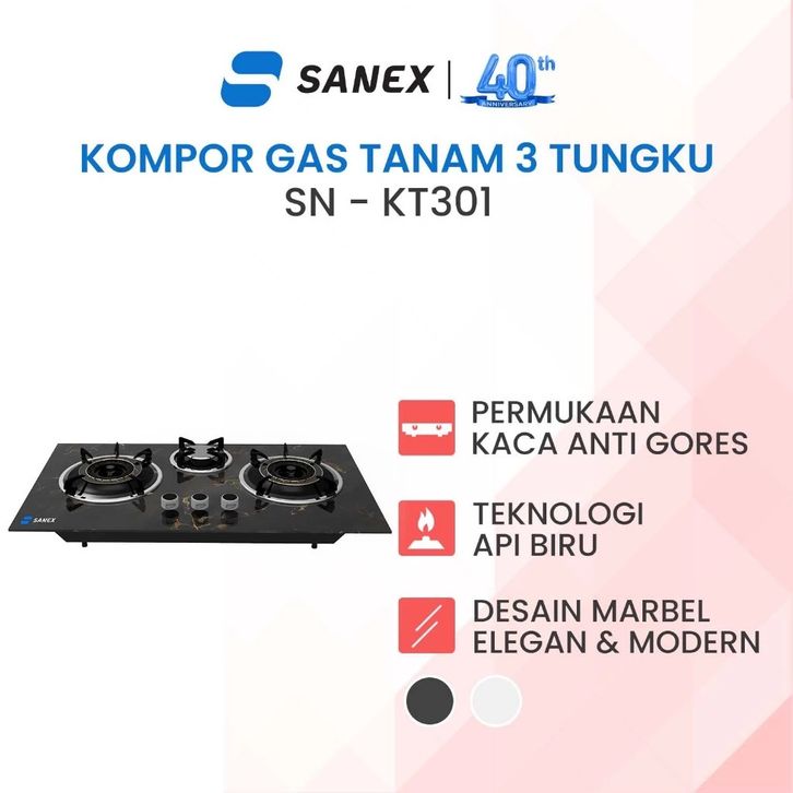 Kompor Gas Tanam 3 Tungku Marble Series SN-KT301