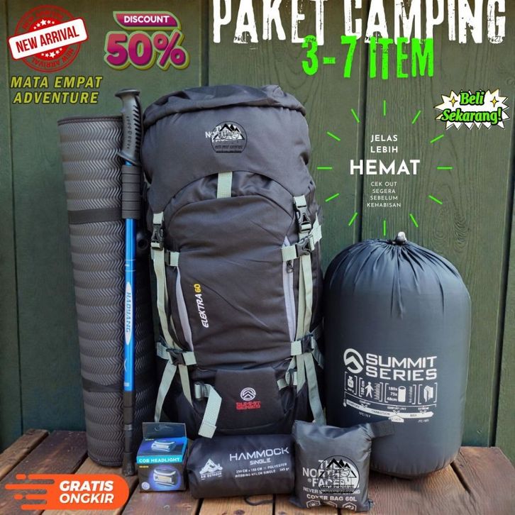 PAKET LENGKAP CAMPING TAS CARRIER GUNUNG 45 LITER PAKET 4 5 6 7 ITEM TAS PENDAKI GUNUNG TAS HIKING ADVENTURE MURAH