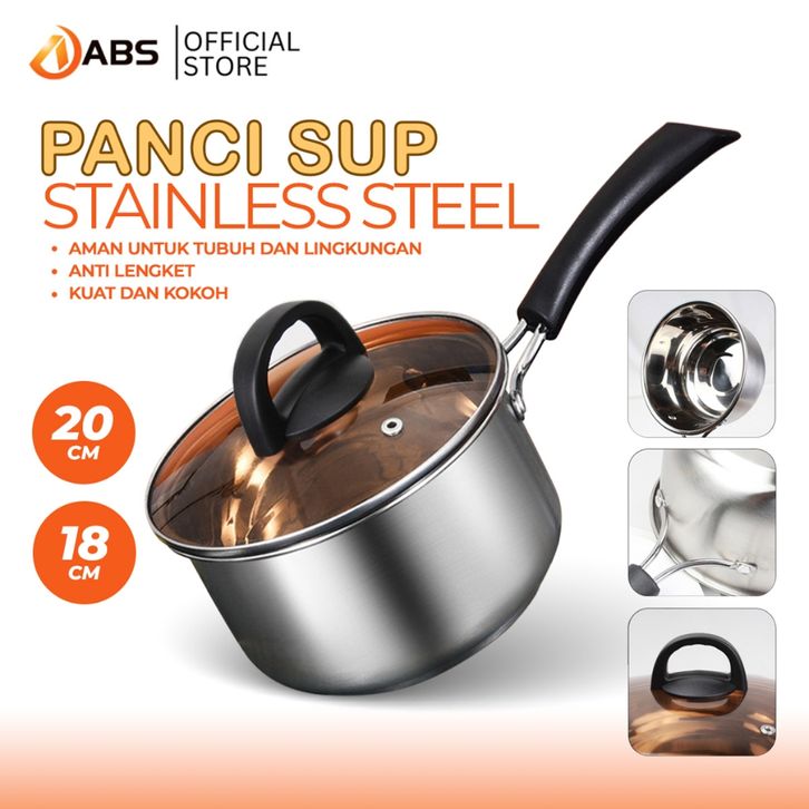 Panci ABS Saucepan Stainless Steel Panci Sup Kuah Anti Lengket Stainless Dengan Gagang 18 dan 20CM Panci Susu Serbaguna