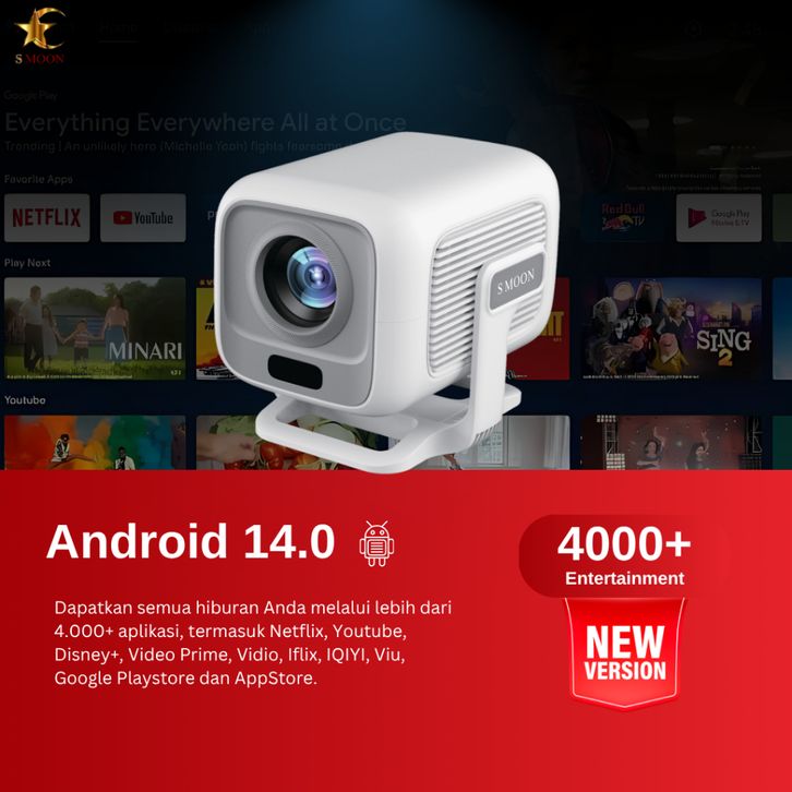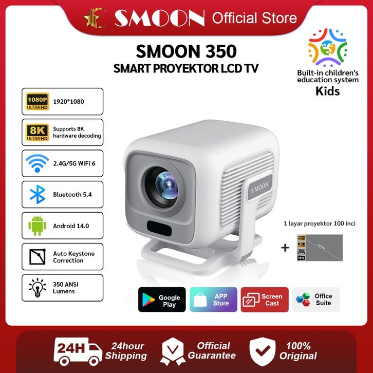 SMOON 350 Pro Projector LCD TV - Proyektor Pintar - 350 ANSI Lumens - TV Android - Fokus Otomatis - Netflix - Google TV
