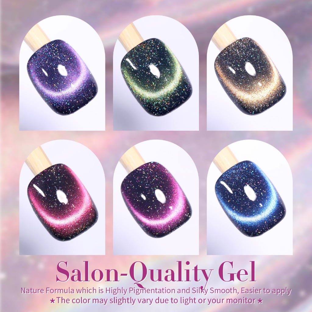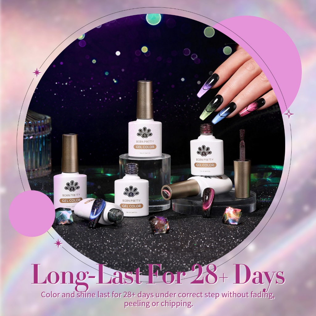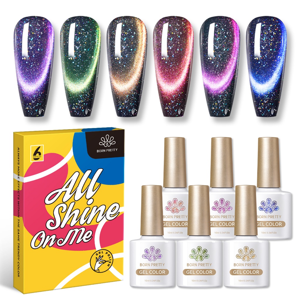 Gel Kutek BORN PRETTY 9D Iridescent Magnetic Cat Warna 6pcs Set Soak Off UV LED Nail Polish 10ml