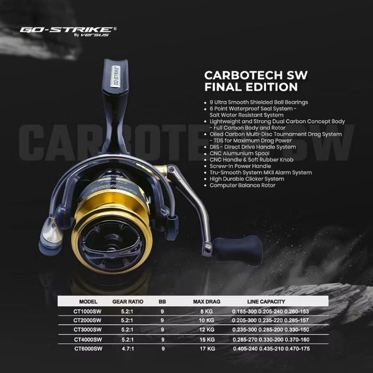 REEL SPINNING GO STRIKE VERSUS CARBOTECH SW CARBO TECH FINAL EDITION POWER HANDLE BODY CARBON