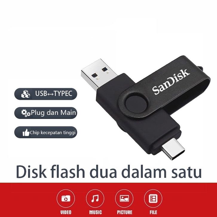 Flasdisk Flasdisk Original SD FLASHDISK OTG TYPE C USB 32GB/64GGB/128GB Disk flash dual-guna komputer ponsel