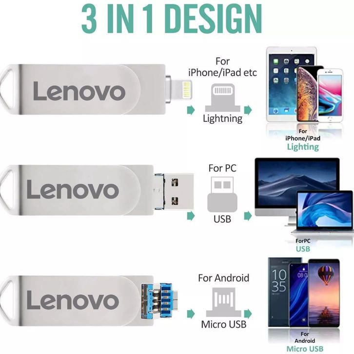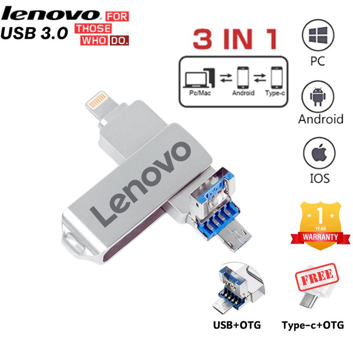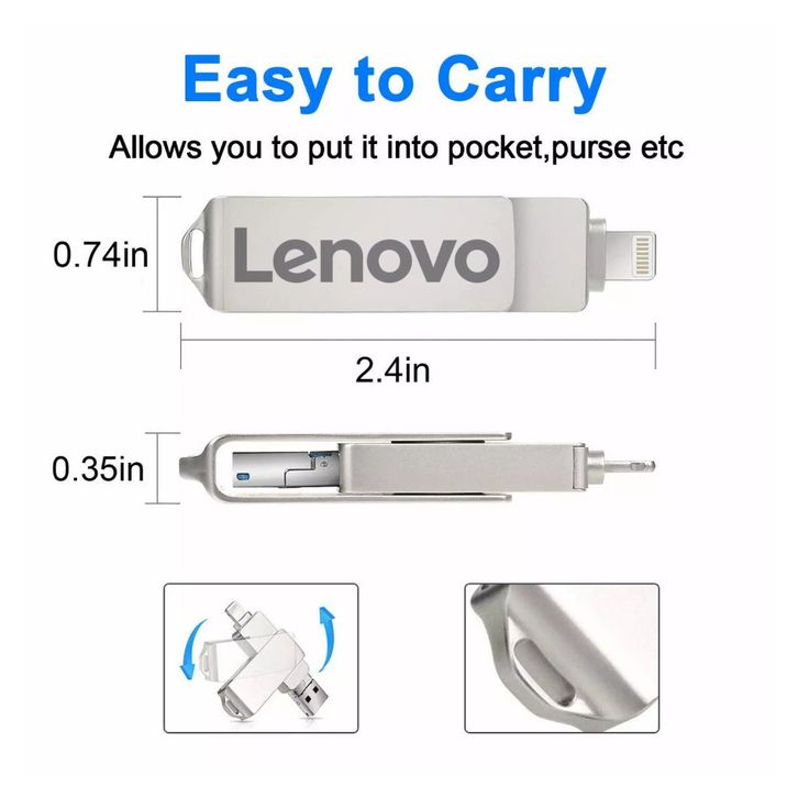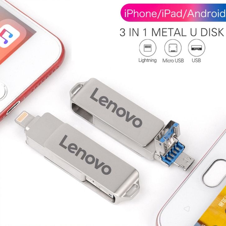 Flasdisk Flasdisk Original 1TB Lenovo Flashdisk 3 in 1 IOS OTG USB Flash Drive 1TB Rotation Pen Drive for iPhone/Andro