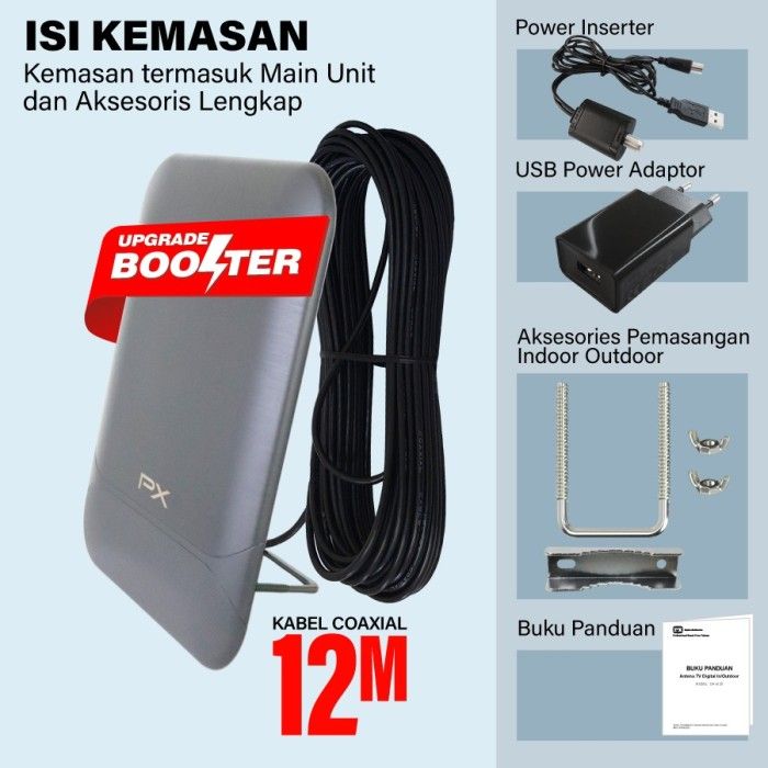 Terlaris PX DA-6120 ANTENA TV DIGITAL INDOOR OUTDOOR ANTENNA BOOSTER DVBT2 4K DA6120
