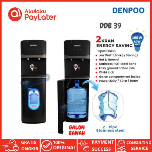 [Mall] DENPOO Dispenser Panas Dingin Es dan Normal DDB 39 | Dispenser Galon Bawah Low Watt 190 Bukan Arashi DP 0