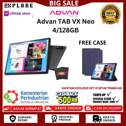 official store 🔥 ADVAN Tab VX NEO RAM4GB Storage 128GB 10.1 IPS Tablet Andoid 14 Unisoc Tiger T606 Garansi Resmi