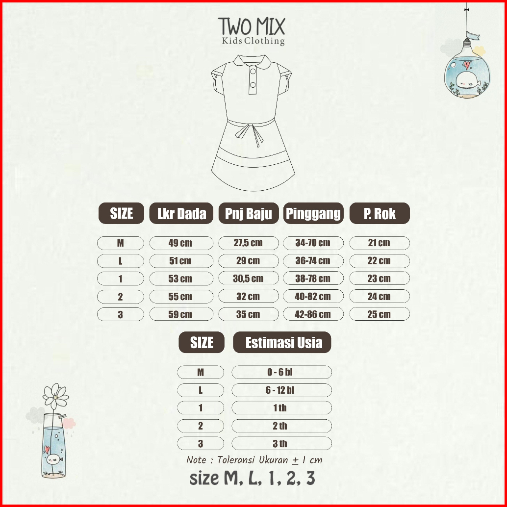 Two Mix - Setelan Baju Rok Bayi Perempuan Lucu Katun - One Set Baby Girls Usia 0-12 Bulan 4363a