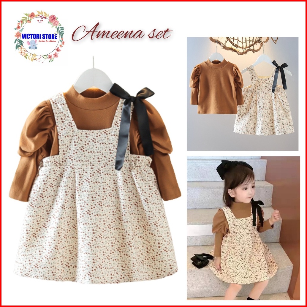 Setelan Bayi Perempuan Ameena Baju Fashion Overal Set 2in1 Baby Girl Korean Style
