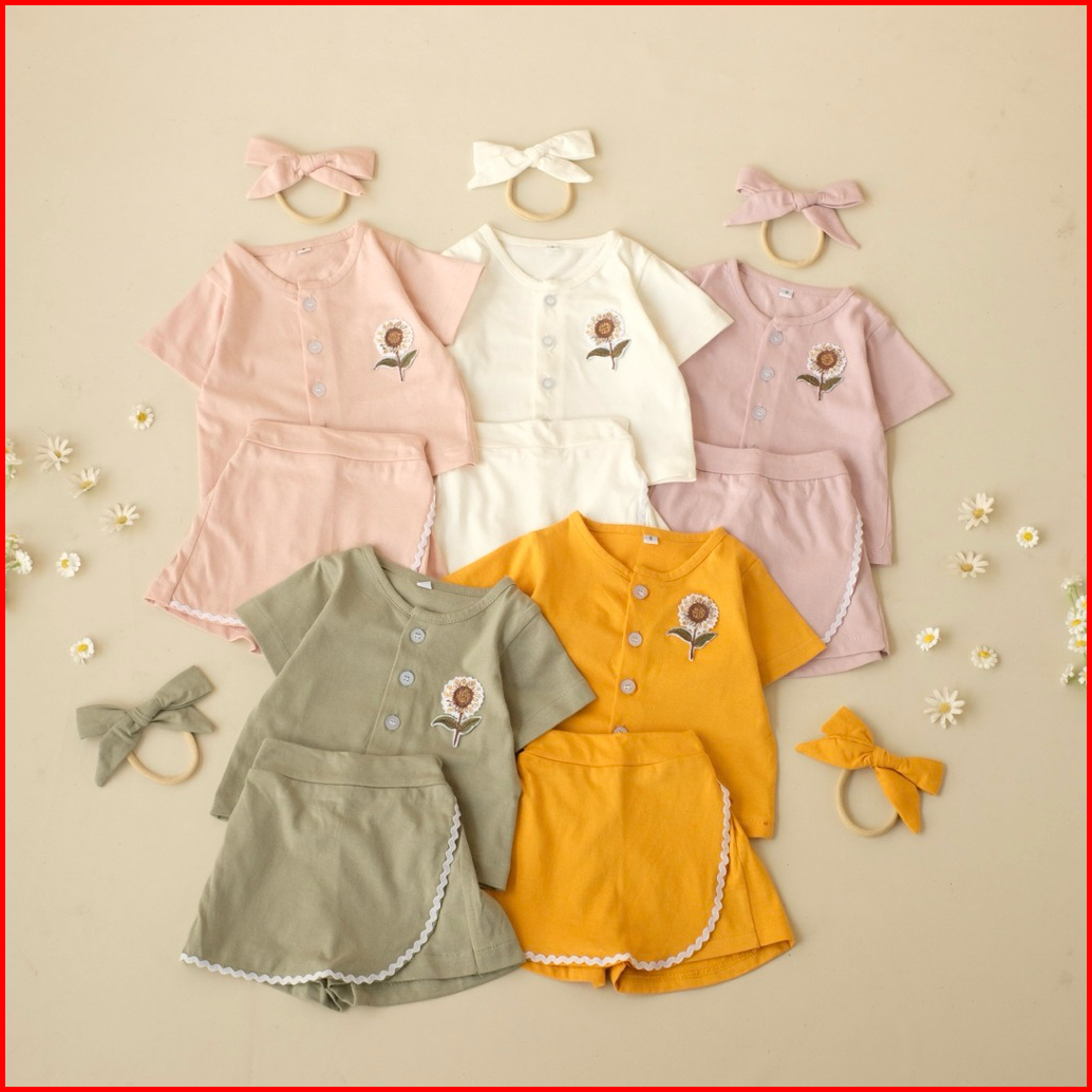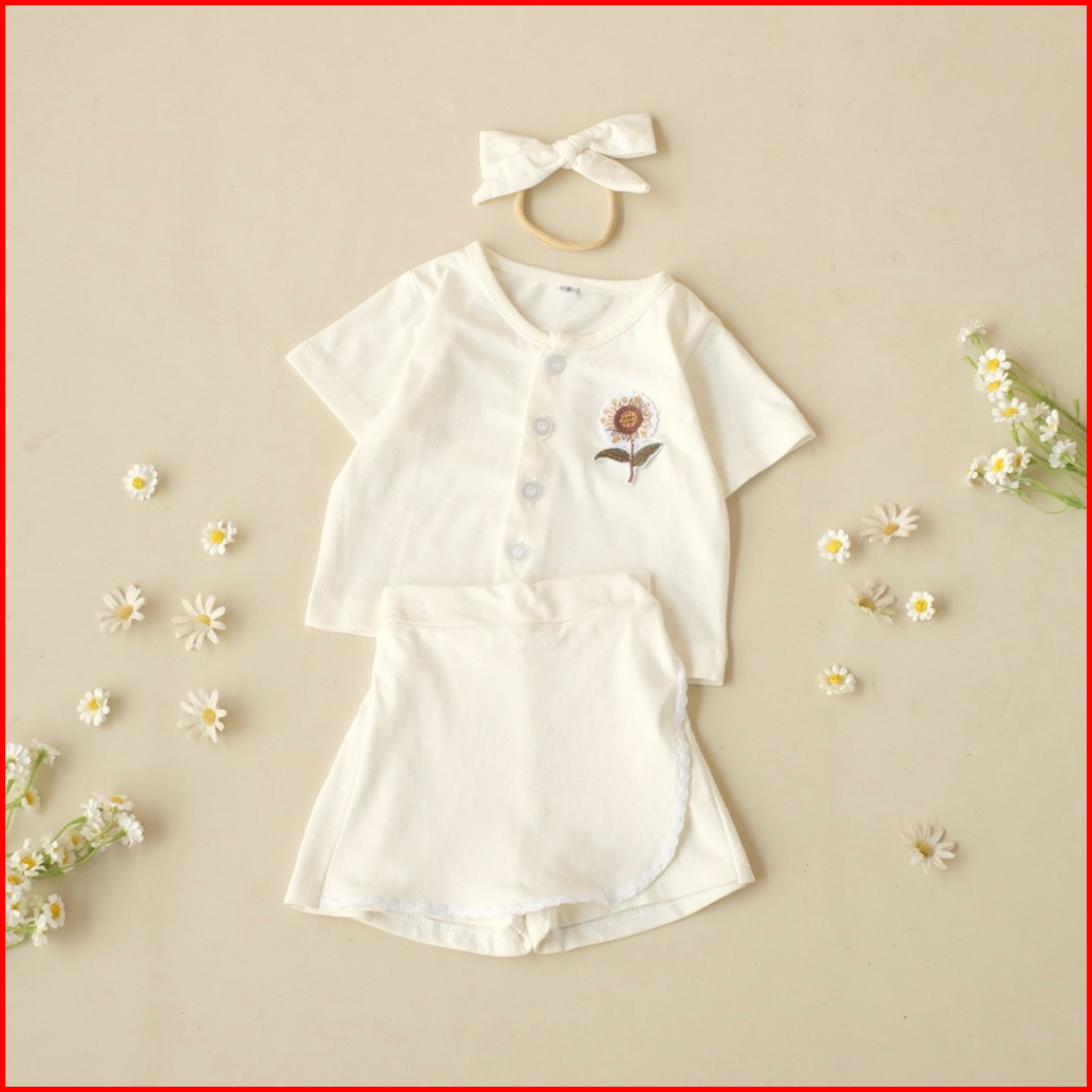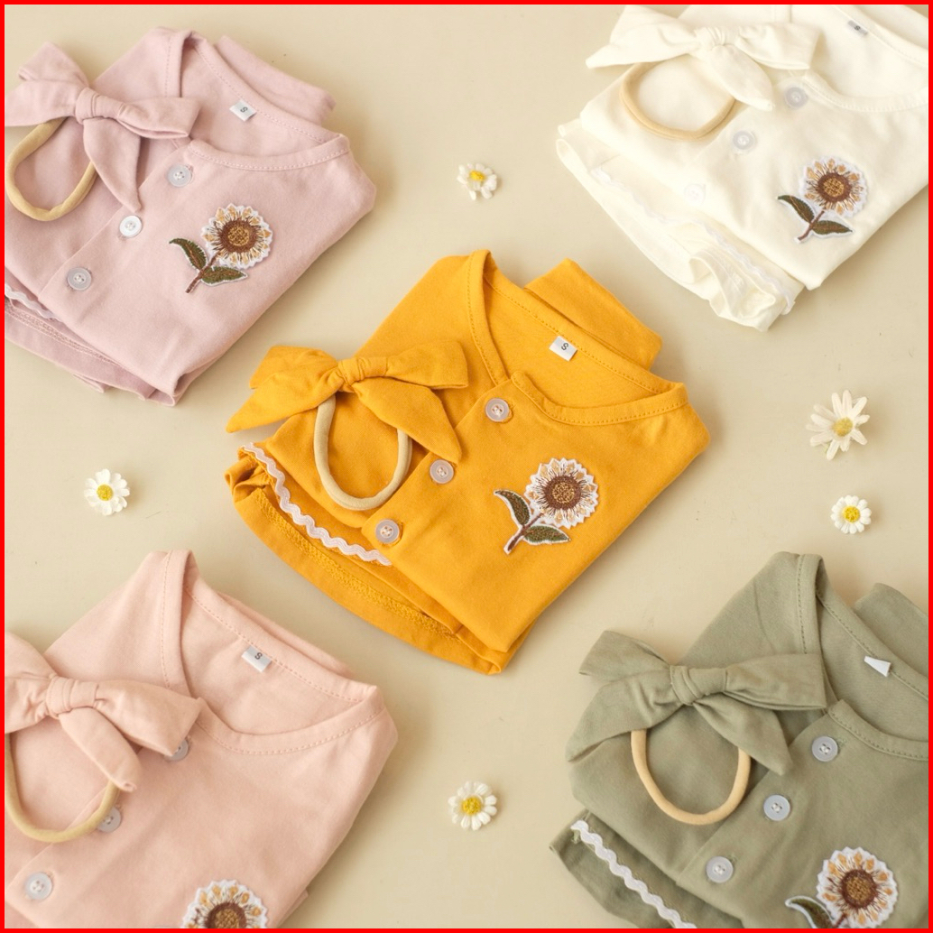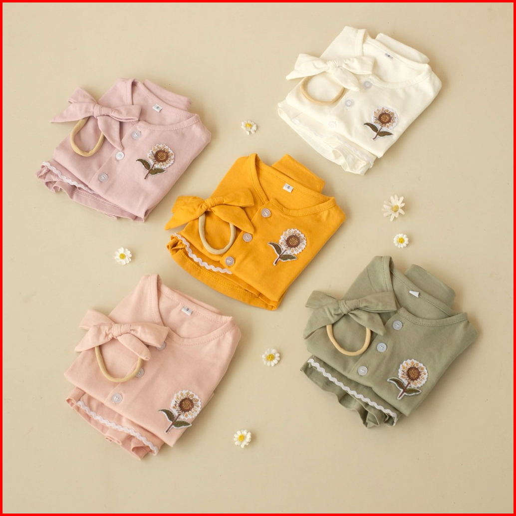 Setelan Bayi Milea Bahan Katun Bonus Headband 0-18 Bulan