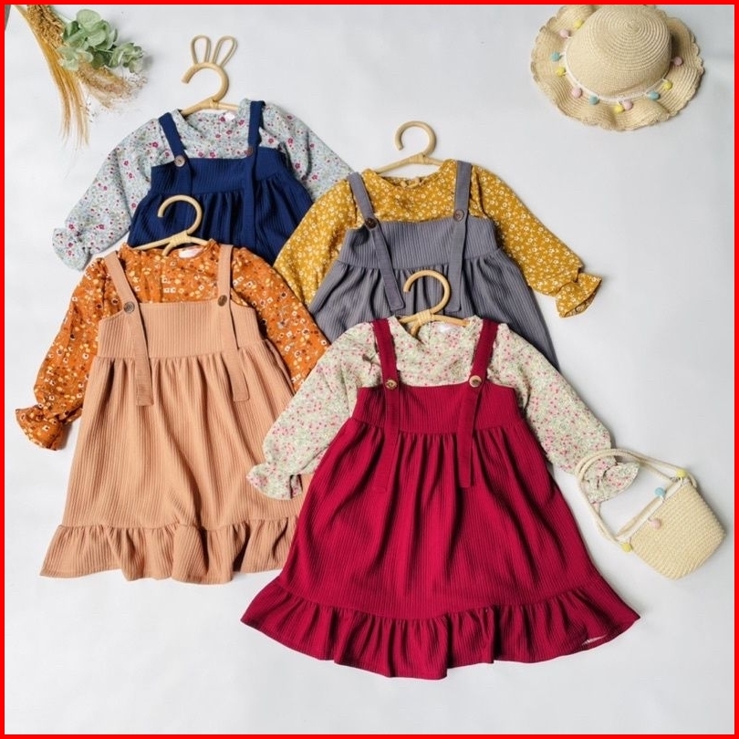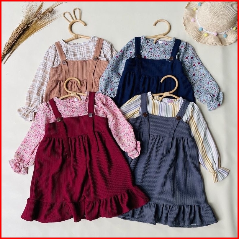 Medinna Baju Setelan One Set Outfit Dress Dres Overall Oneset Kodok Ootd Lengan Panjang Bayi Anak Perempuan Usia 1 2 3 4