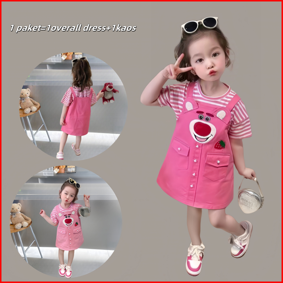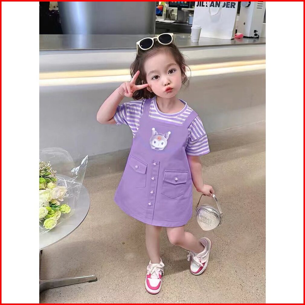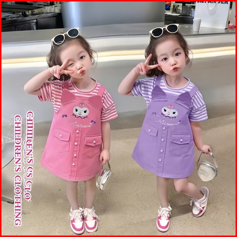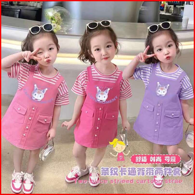 Dress Set 2in 1 Jumper Lotso Anak Perempuan 1-5th Setelan Anak Cewek Overball Kuromi Anak