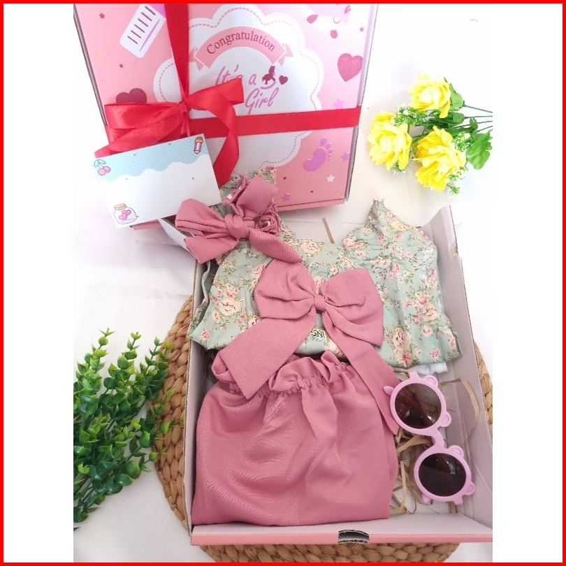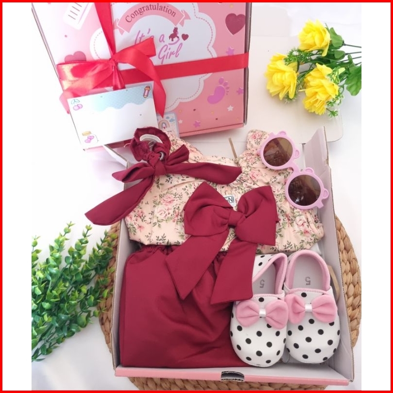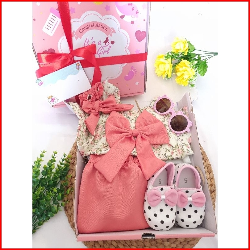 Hampers Bayi Perempuan Paket Lody Set Lengkap Hemat Box Motif Baby Girl Kado Bayi Cewek Murah Set Baju Celana Bandana Ka