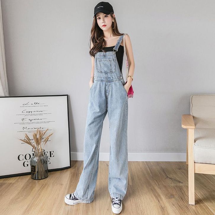 Overall Kaki Lebar Longgar Pinggang Tinggi Gaya Korea Wanita