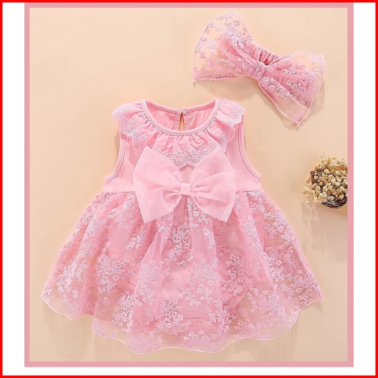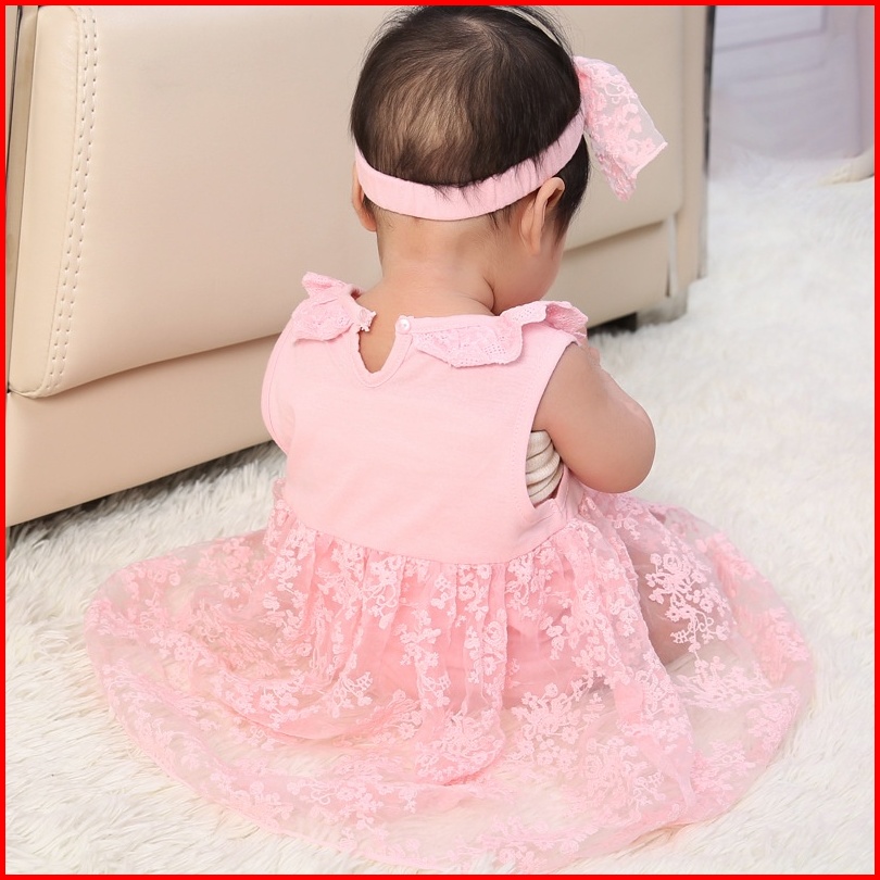 Dress Pesta Bayi Perempuan Baru Lahir Bunga Dress Lace Dress Anak Pakian Dan Headband V31