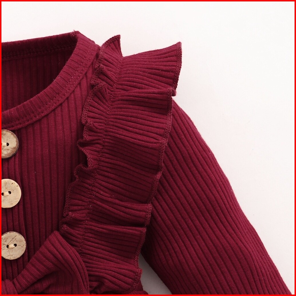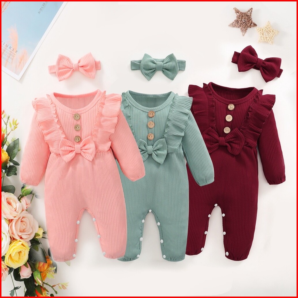 Baju Baby Girl Bodysuit 0-18 Months Newborn Baby Clothing Set Long Sleeved Ruffle Solid Color Playsuit Headband 2pcs Lov
