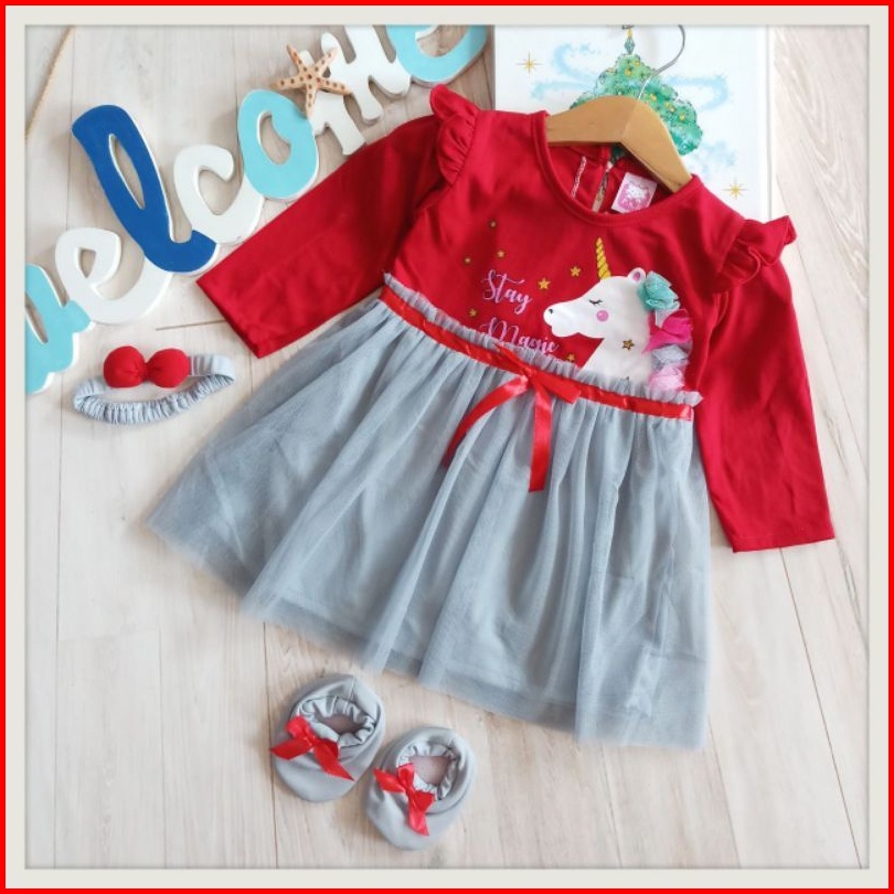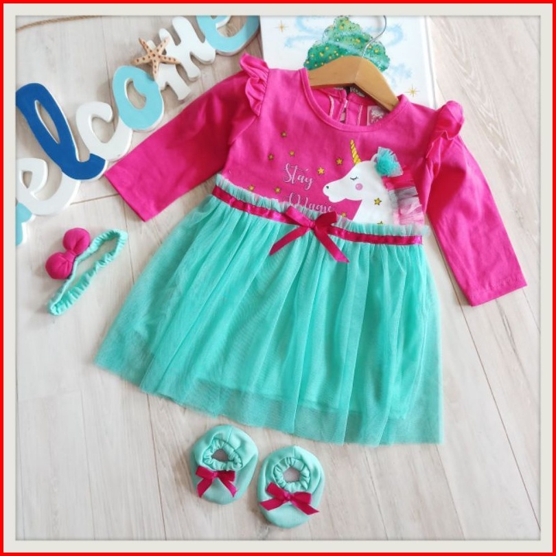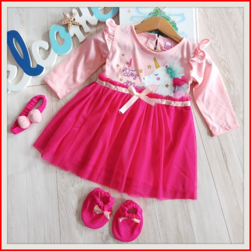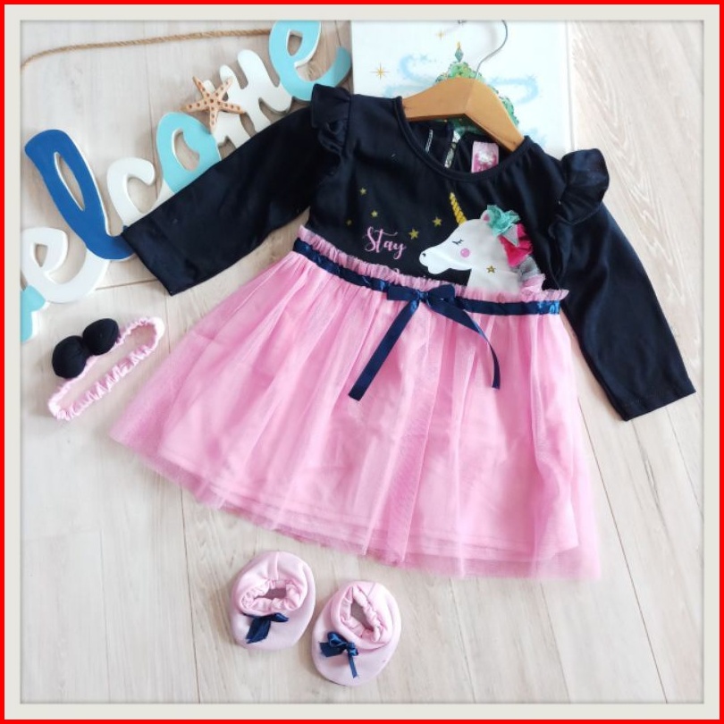 Baju Baby Perempuan Dress 0 8 Bulan Set Sepatu Bando Lengan Panjang Tile