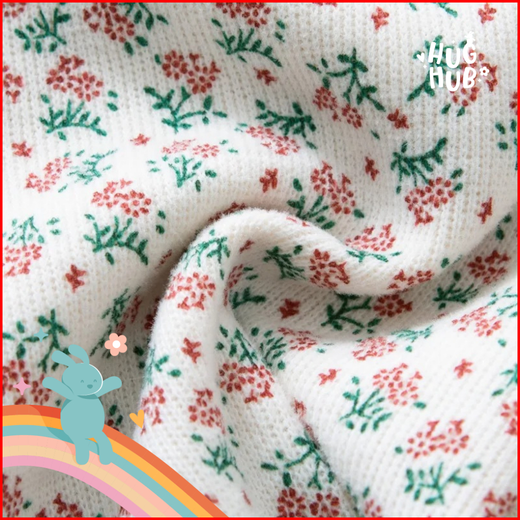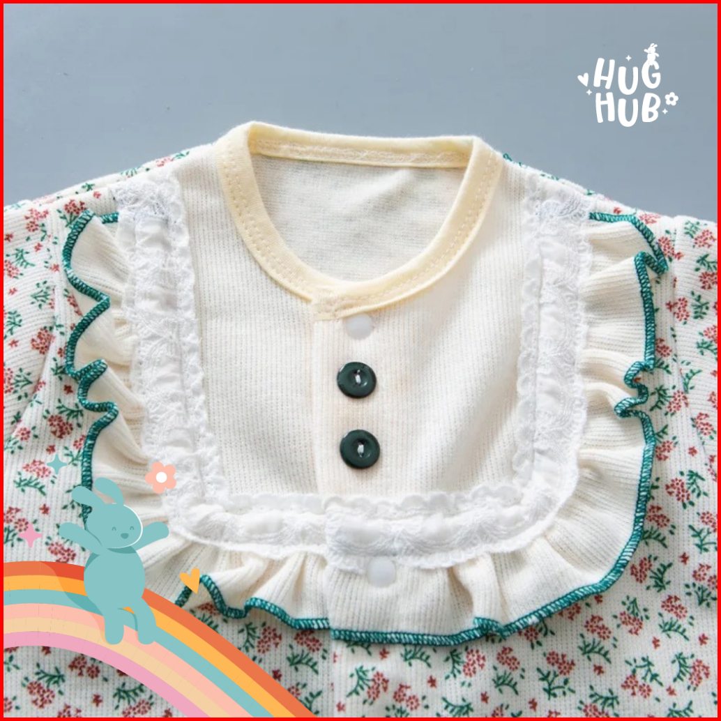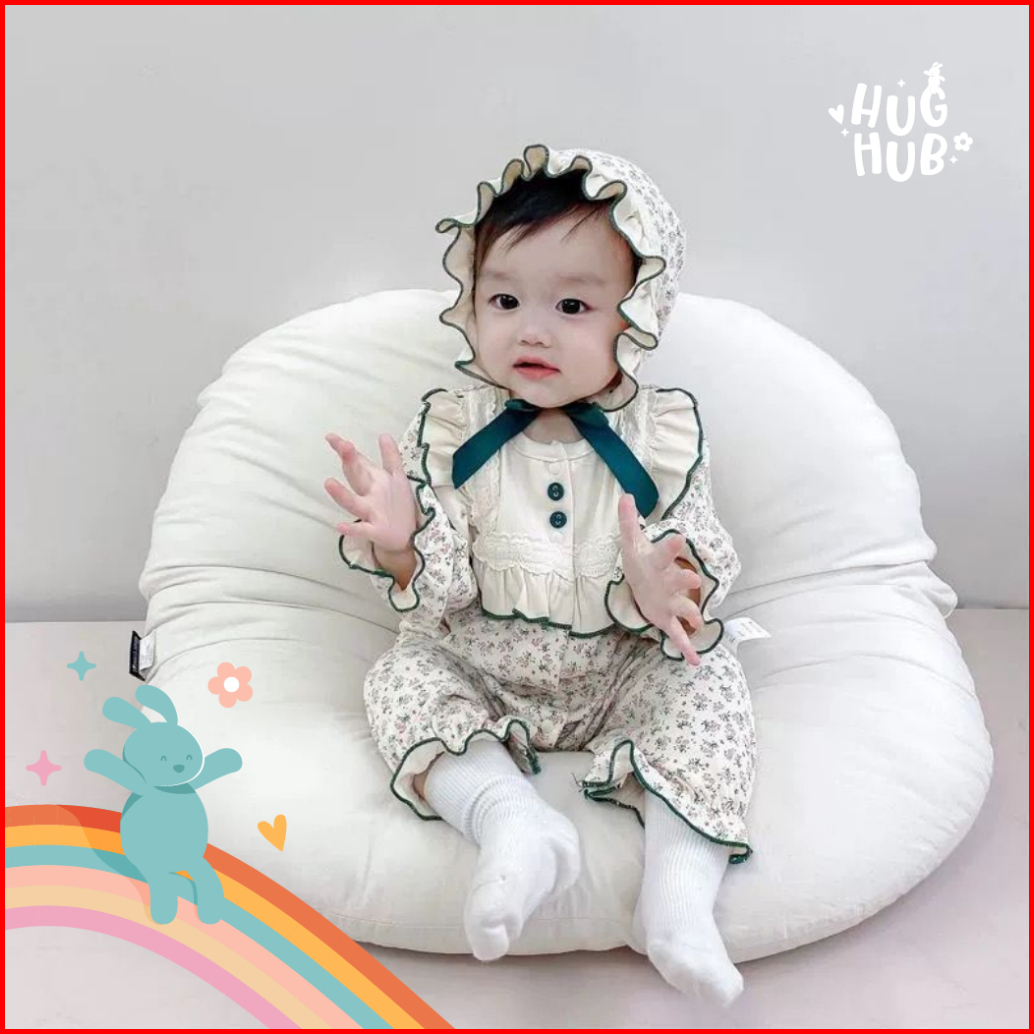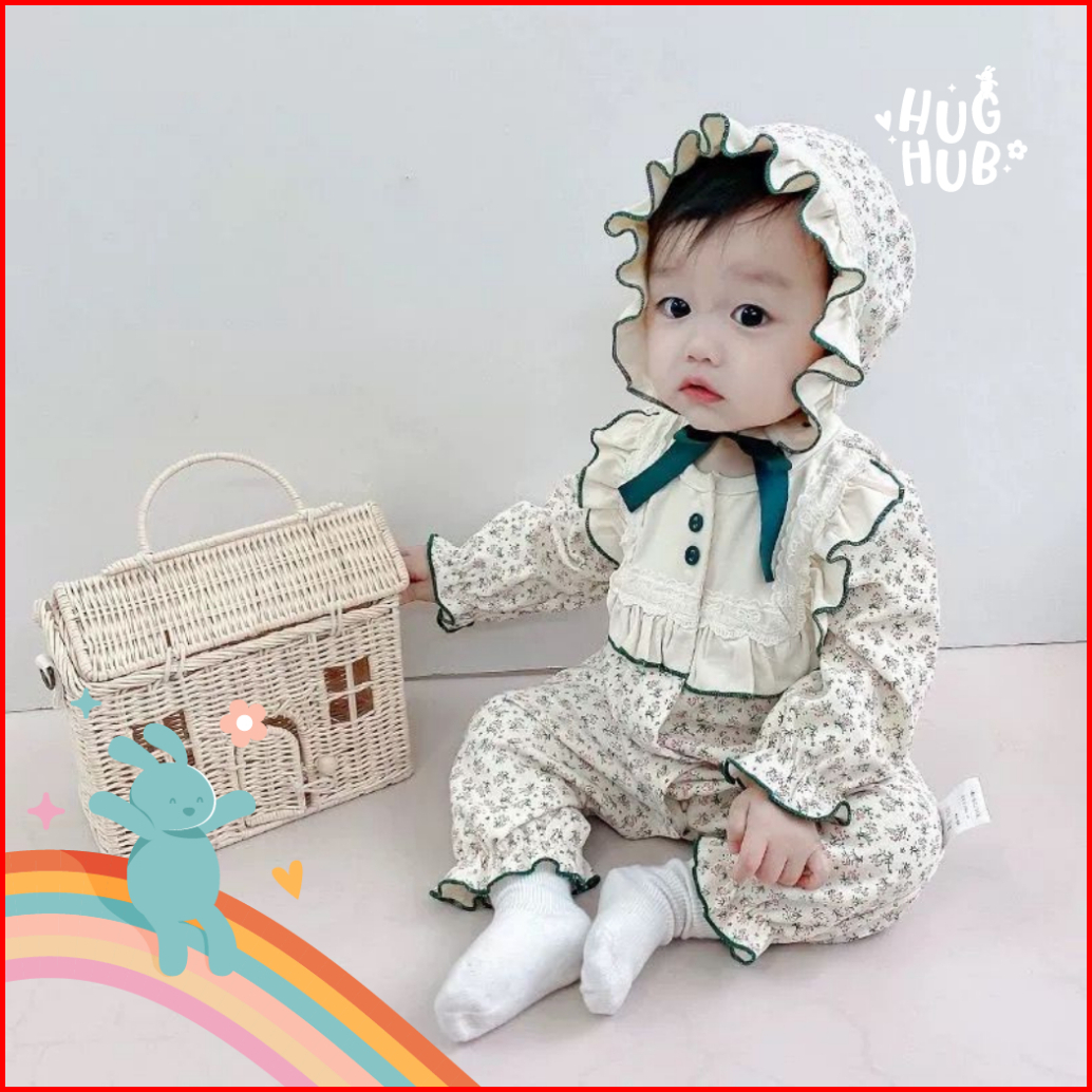 Hughub Jumper Bayi Perempuan Premium Usia 3-12 Bulan Jumpsuit Anak Motif Bunga Dan Topi Lucu