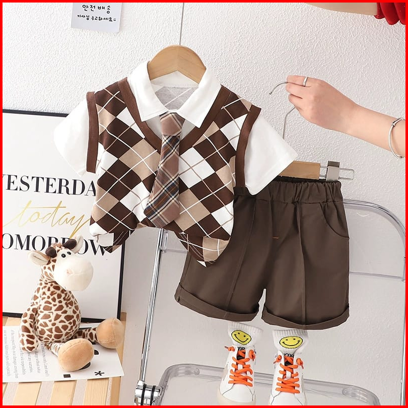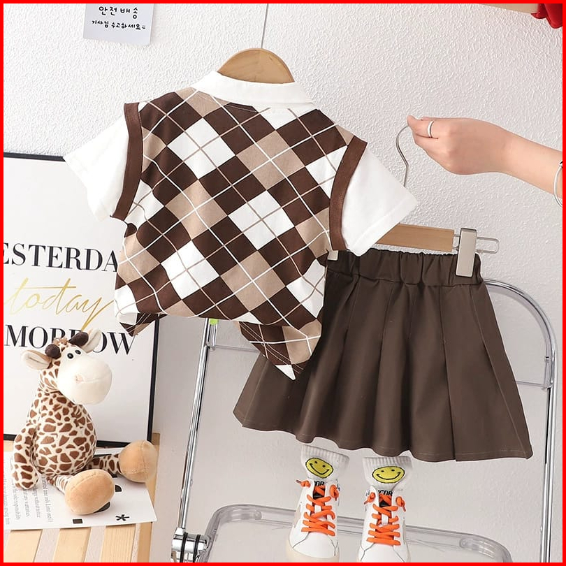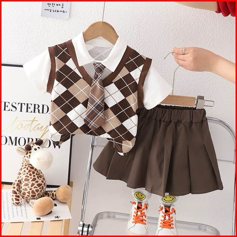 Brownieground Setelan Anak Kembar Usia 6 Bulan - 5 Tahun Model Baju School Ala Korea Lengan Pendek