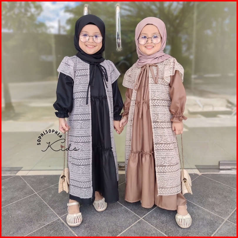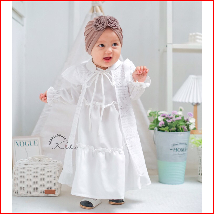 Aesha By Sophisophia. Gamis Couple Ibu Anak Lebaran 2026. Gamis Putih Manasik Dan Aqiqah. Gamis 2in1 Outer Lepas Pasang.