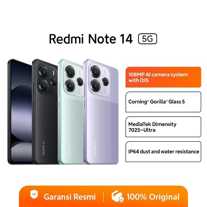 HP XIAOMI REDMI NOTE 14 5G 108MP AI CAMERA SYSTEM WITH OIS MEDIATEK DIMENSITY 7025 ULTRA IP64 DUST AND WATER-RESISTANT