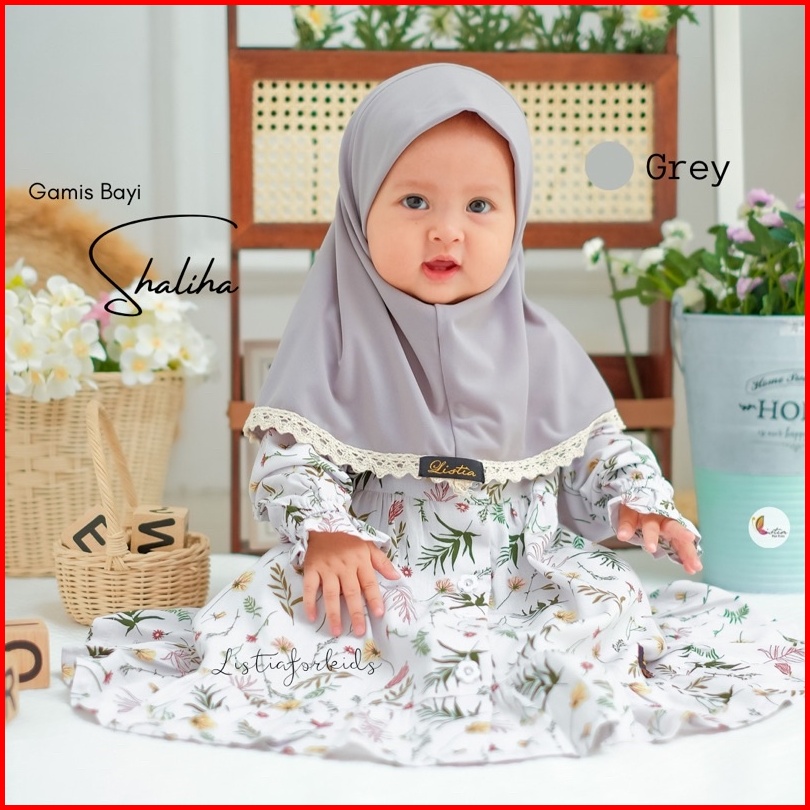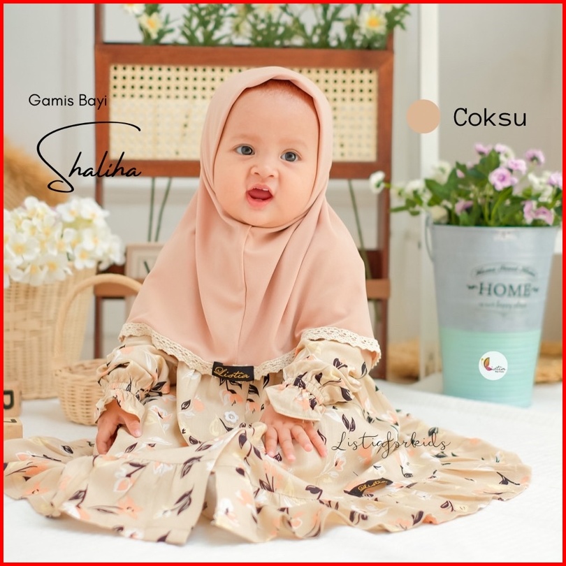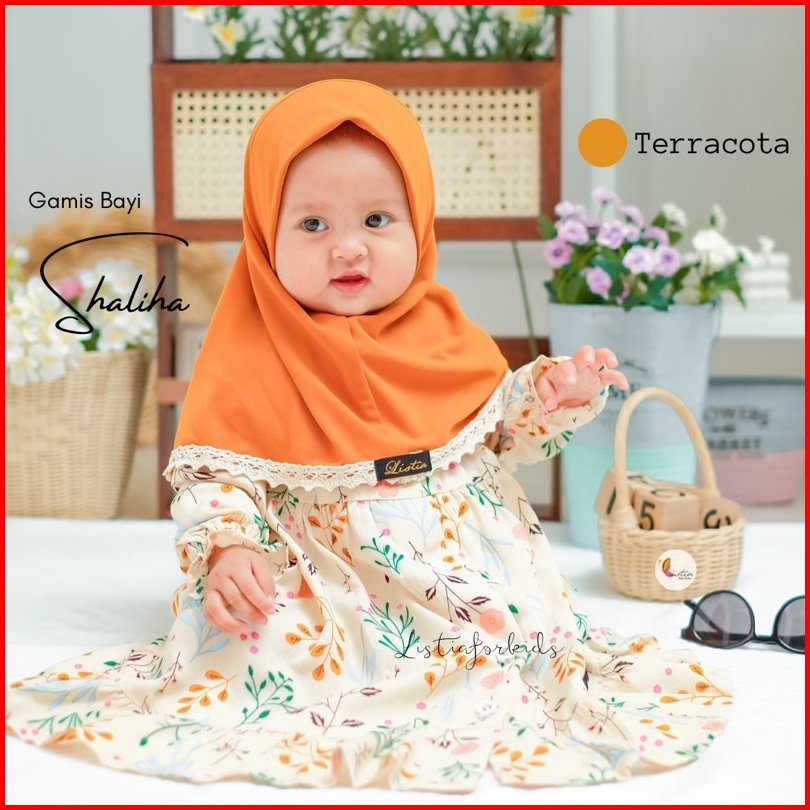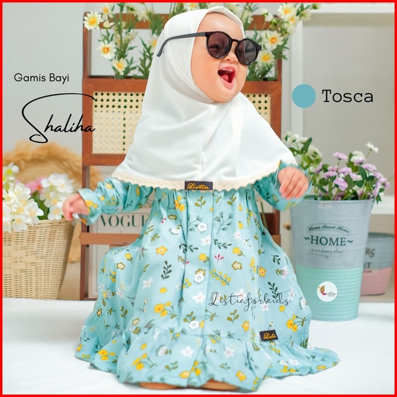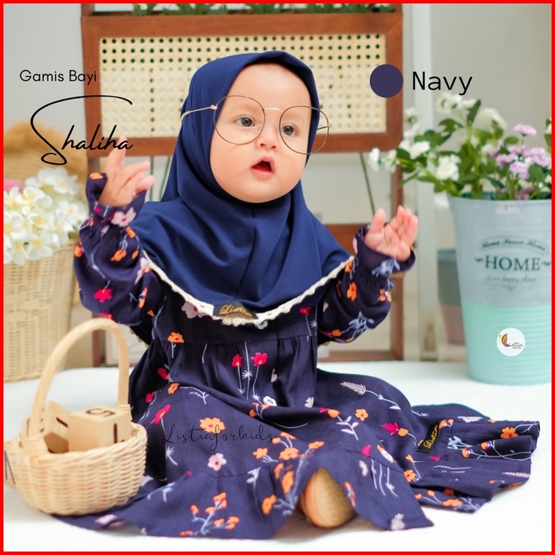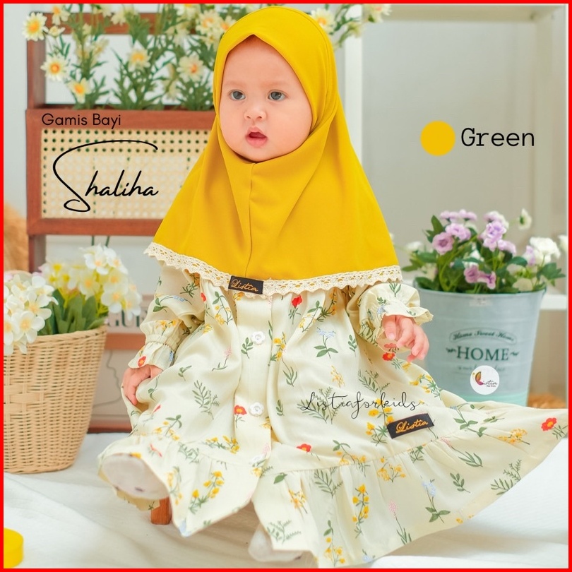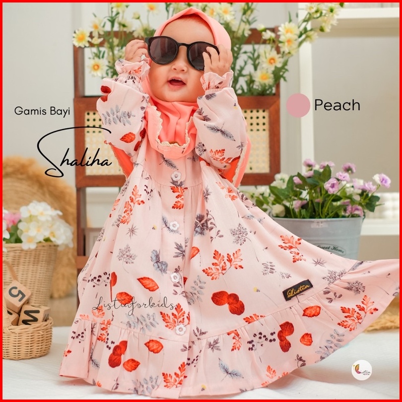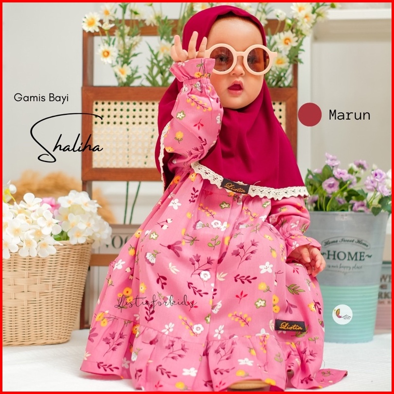 Gamis Bayi Shaliha - Baju Gamis Anak Bayi Perempuan 0-12 Bulan Newborn Rayon Motif Premium By Listiaforkids