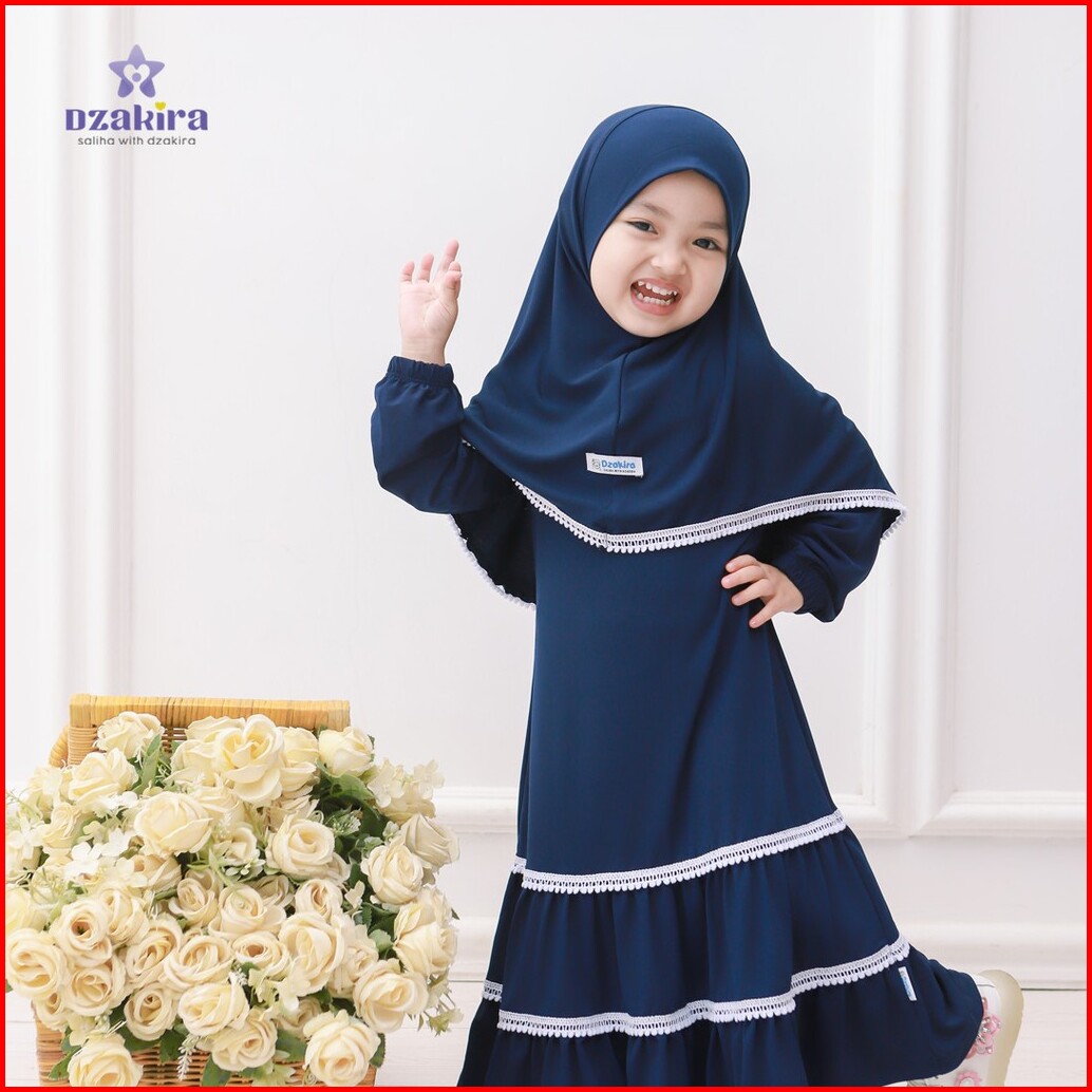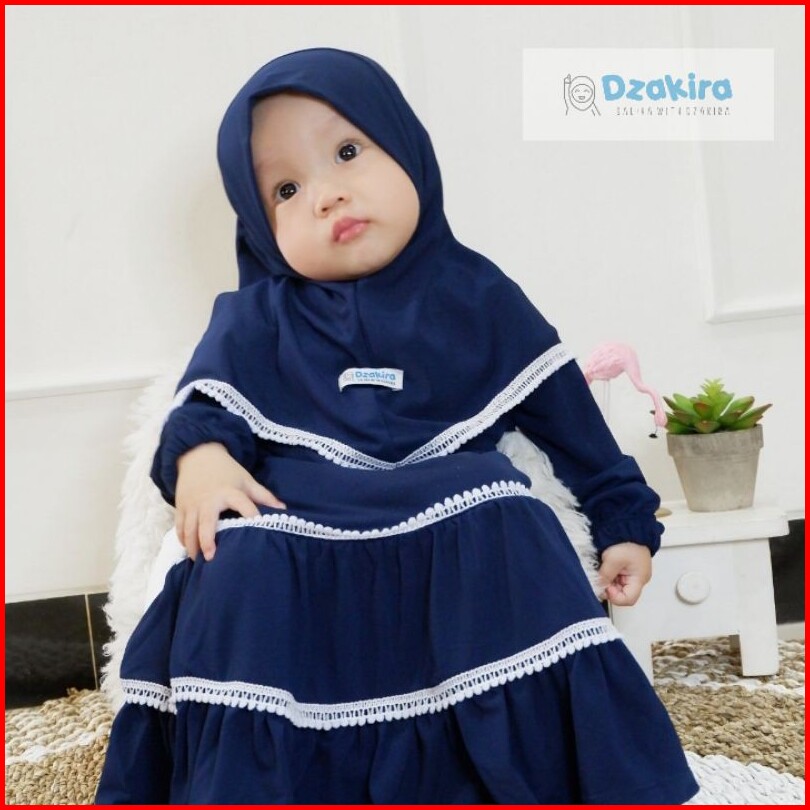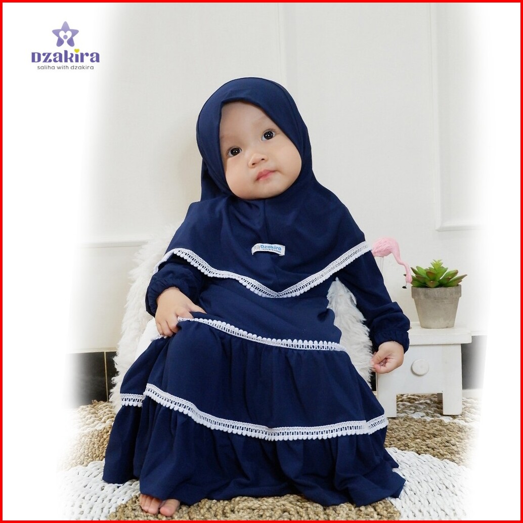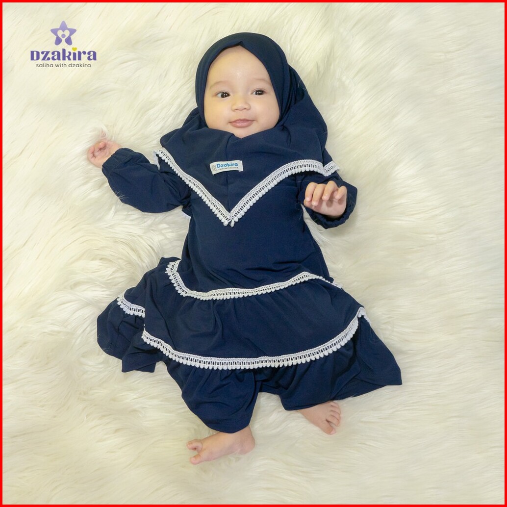 Gamis Bayi 0-3thn Renda Pompom Kirana Navy Jersey Twist Premium Original By Dzakira