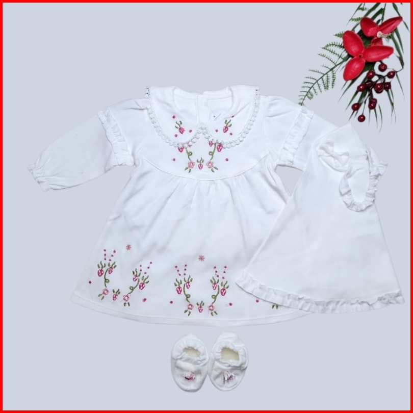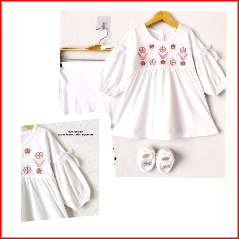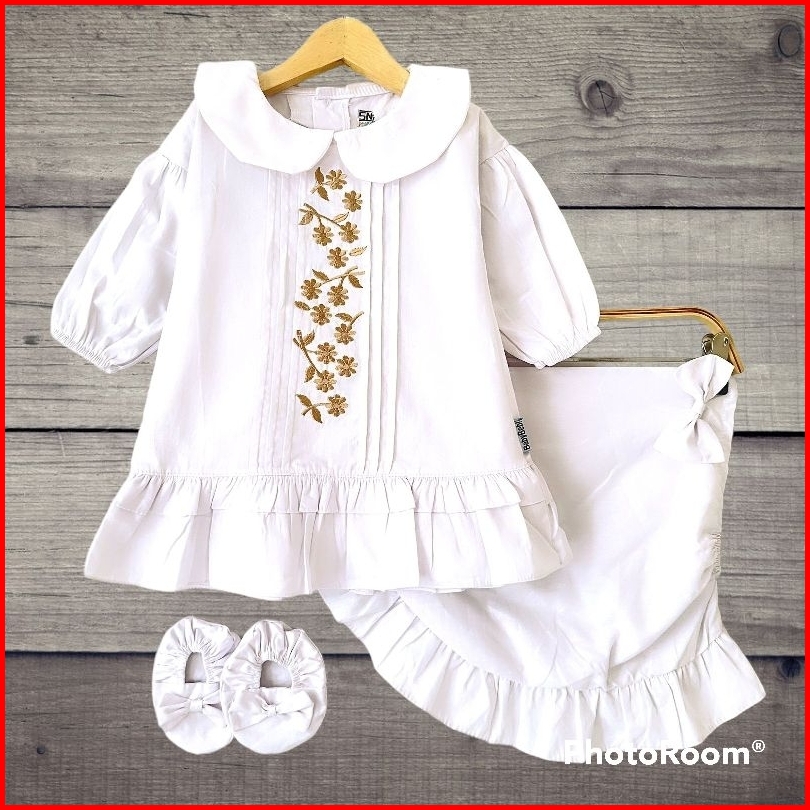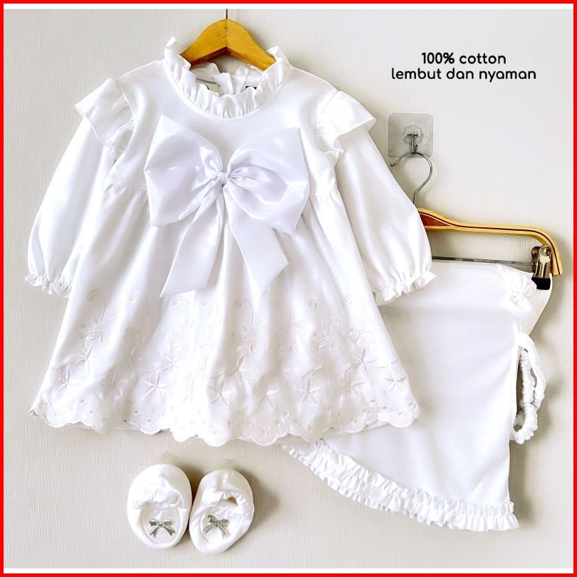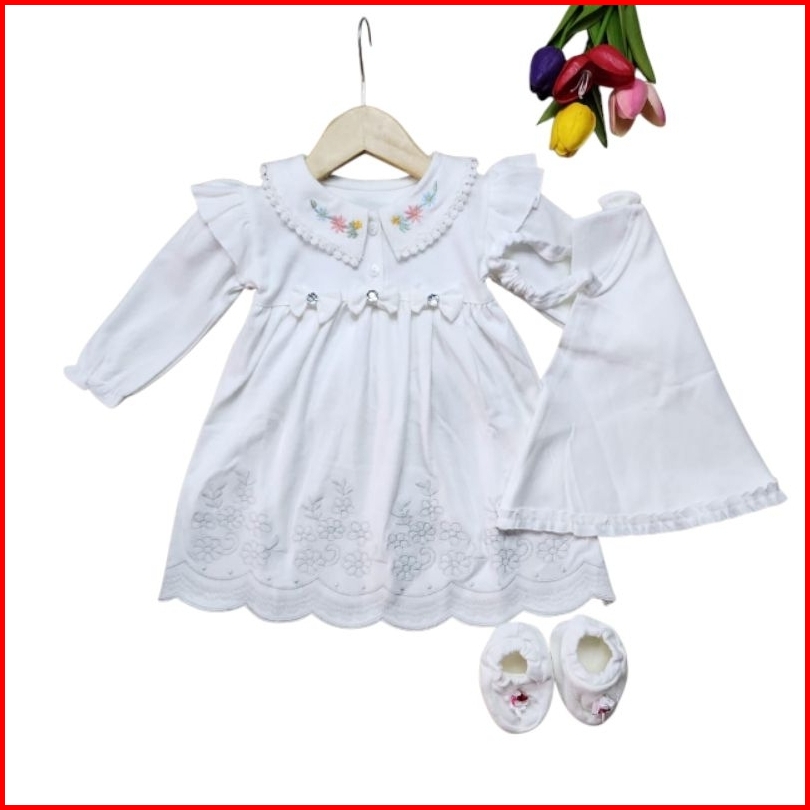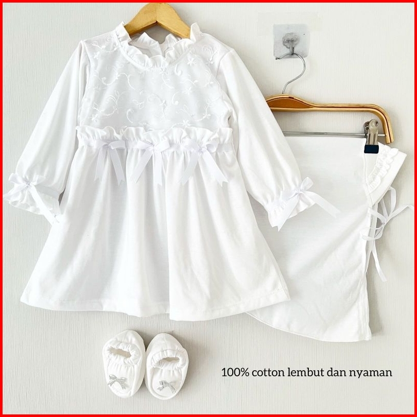 Gamis Mewah Aqiqah Pure White Baju Setelan Muslim Anak Cewek Gamis Bayi Lebaran Dress Muslim Anak Perempuan Baju Lebaran