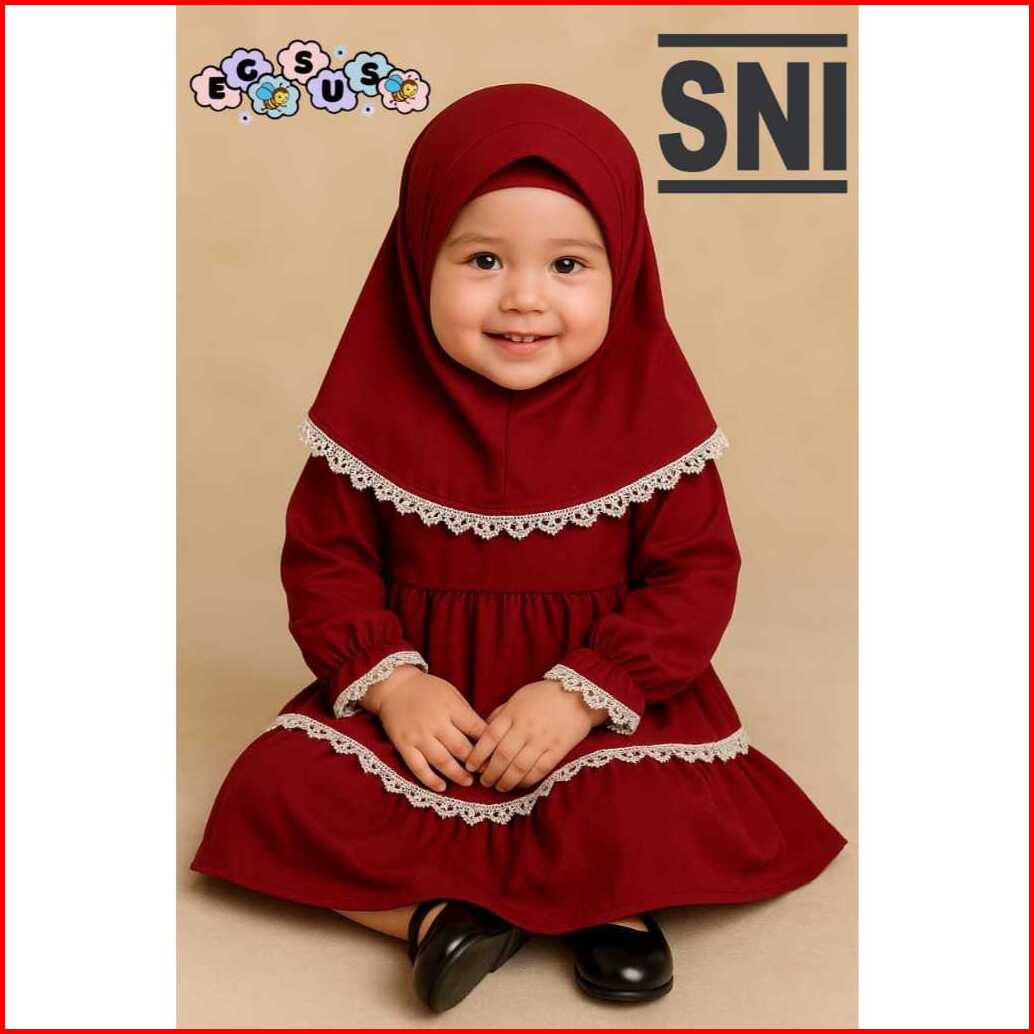 Egsus Gamis Bayi Anak Perempuan Free Jilbab Murah Aurora New Born 0 - 3 Tahun Maroon