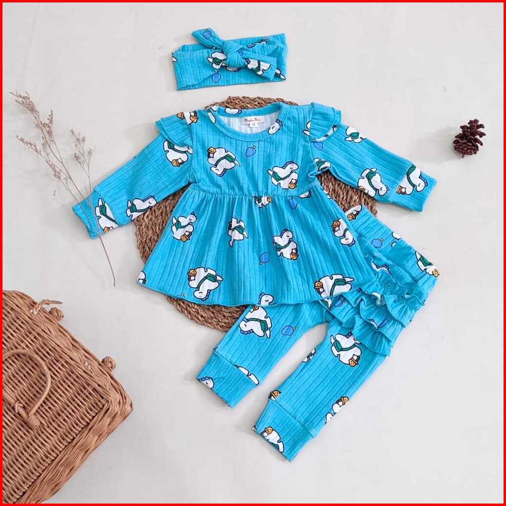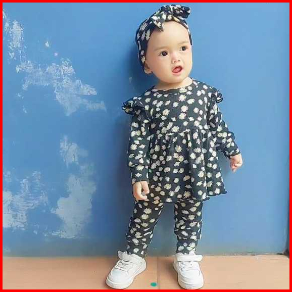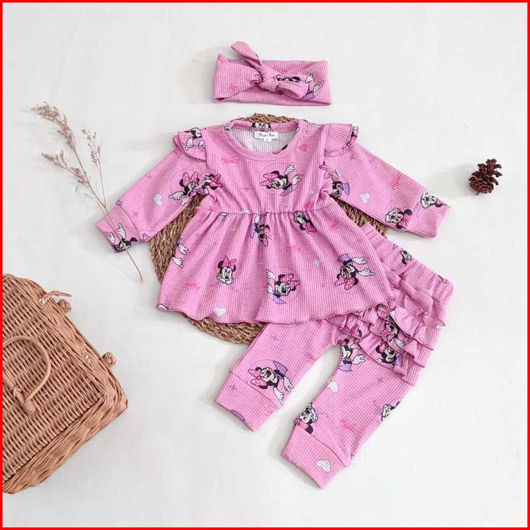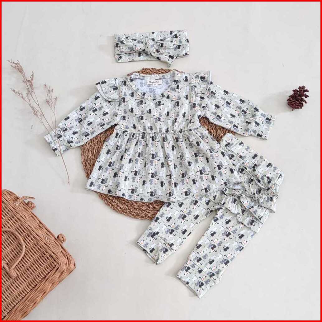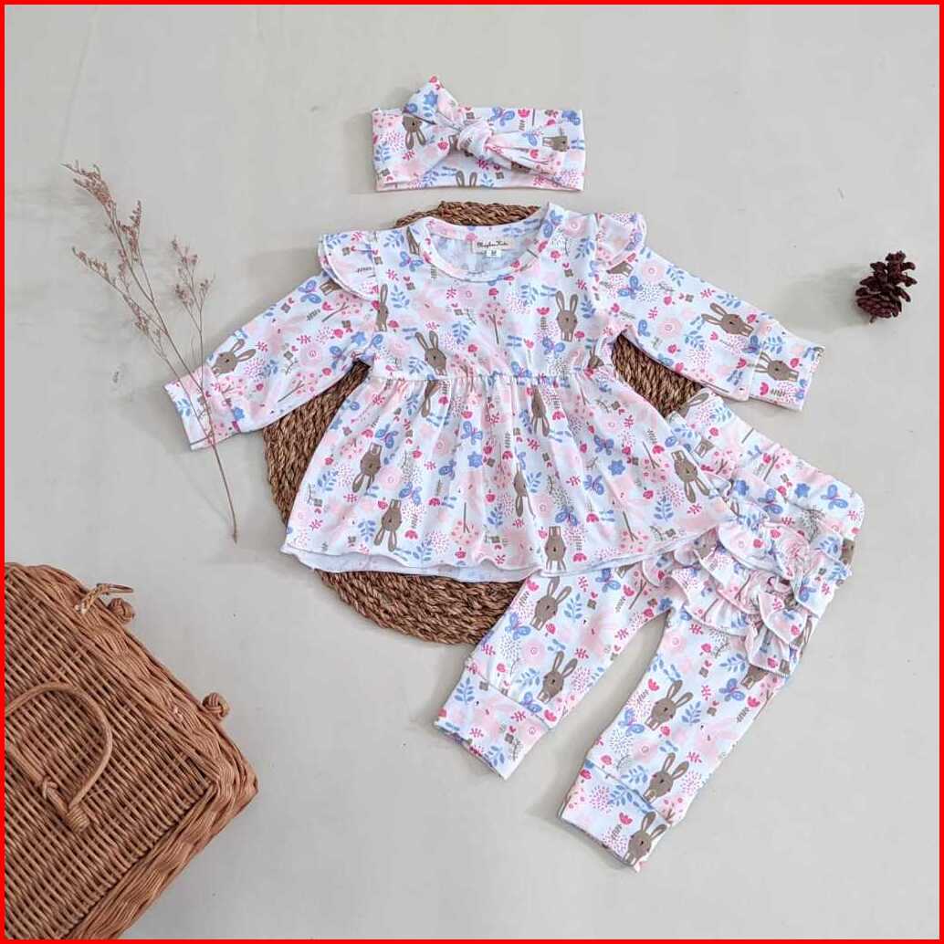 Isvara Oneset Free Headband - Setelan Baju Bayi Perempuan Bonus Bandana Maybee Kids Mybee
