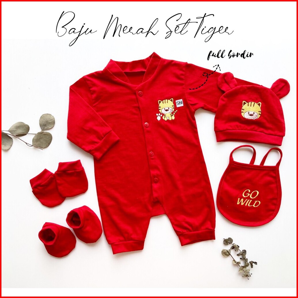 Jumper Anak Babeebabyshop Jumper Bayi One Month Baju Bayi 1 Bulan Baju Merah Set Tiger Bear