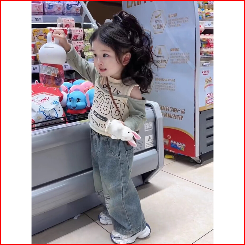 Setelan Celana Jeans Anak Perempuan Ootd Anak Perempuan Oneset Anak Perempuan T-shirt Lengan Panjang