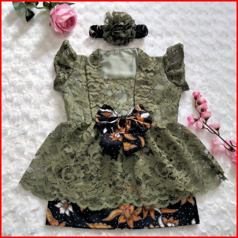 Kebaya Bayi Kebaya Anak Setelan Kebayan Anak Hijau Army