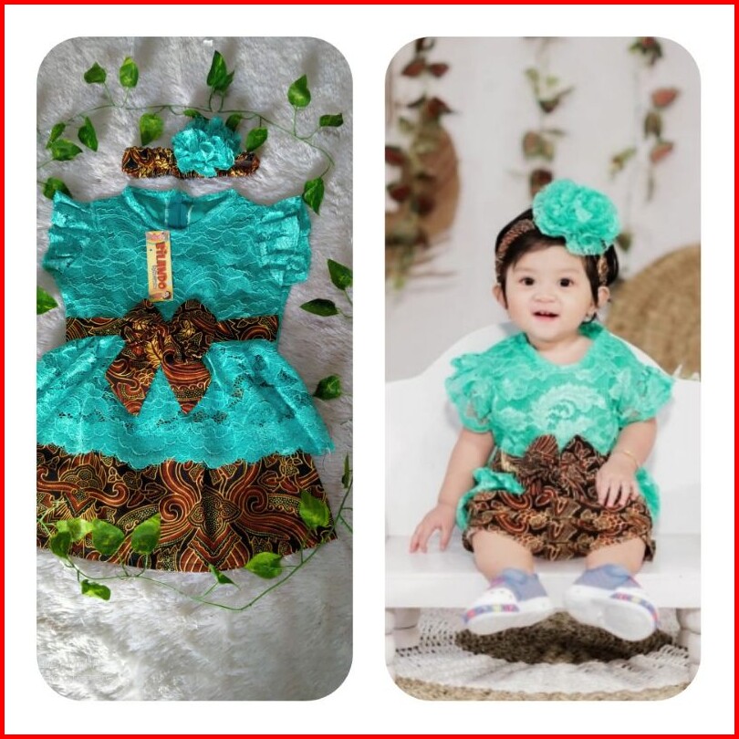 Kebaya Bayi Model Lengan Kriwil Warna Toska