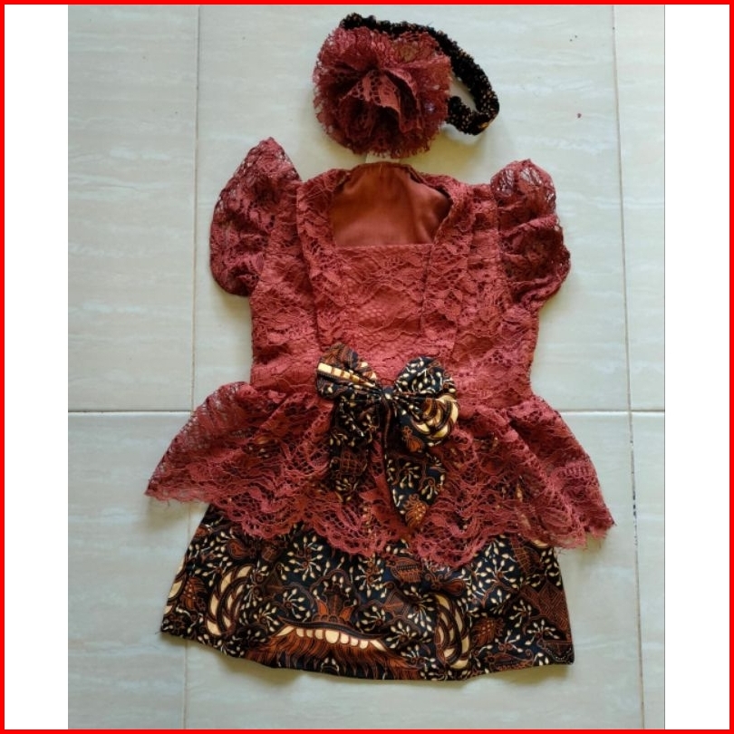 Kutubaru Anak Teracota Kebaya Brokat Modern Bayi 7-12 Bln Warna Fanta Kebaya Turuntanah Murah Lucu Baju Ulangtahun Broka