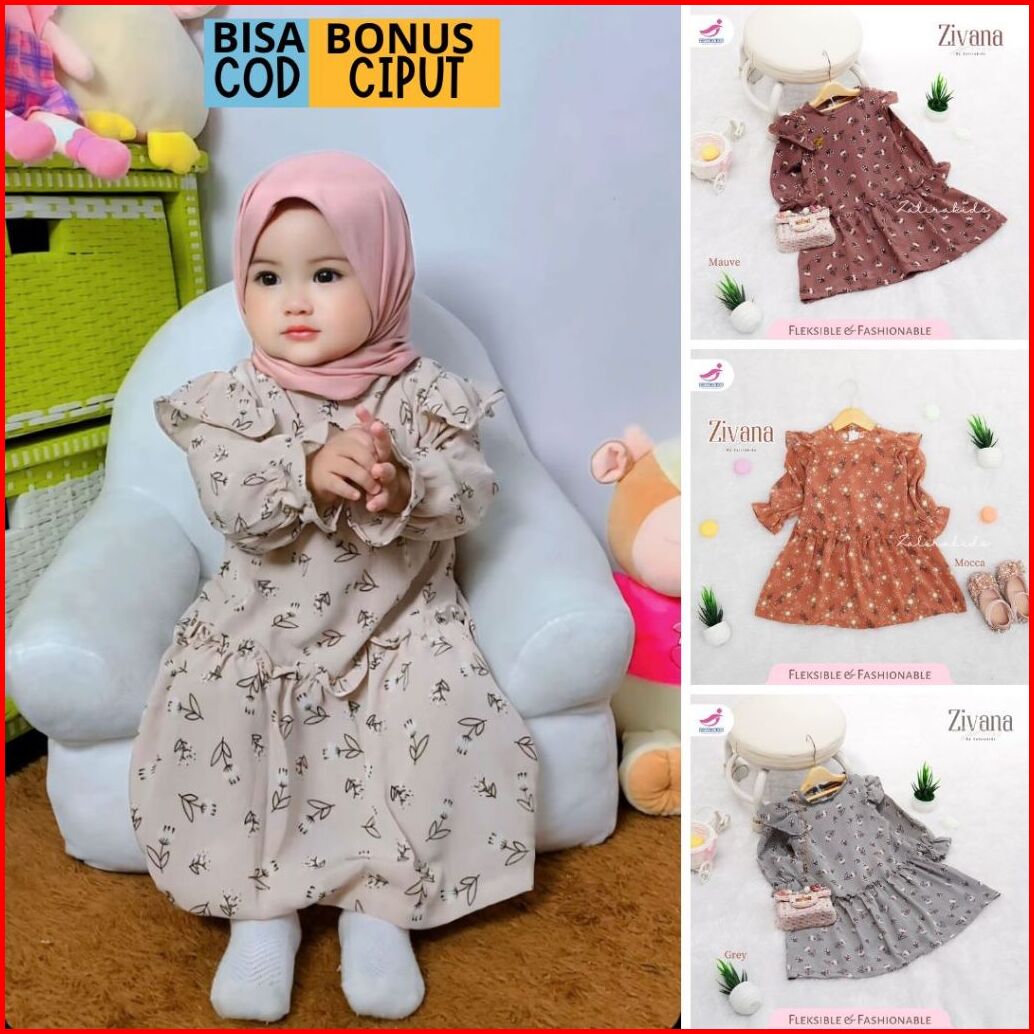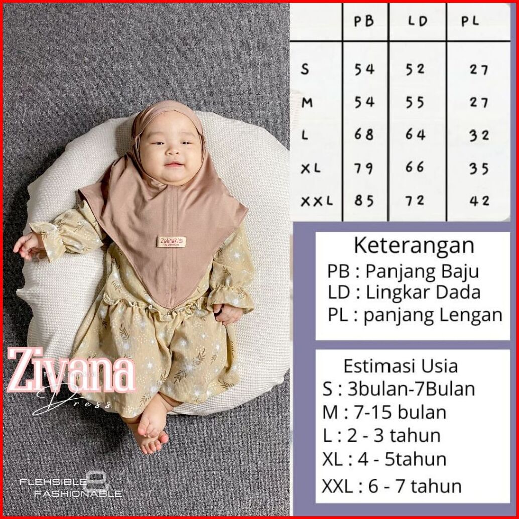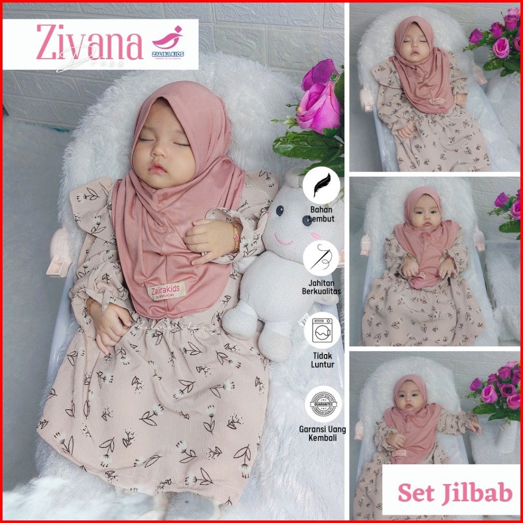 Zalira Kids - Dress Anak Zivana Gamis Bayi Newborn Set Jilbab Usia 0 Bulan - 6 Tahun Dress Muslim Anak Gamis Bayi Cewek