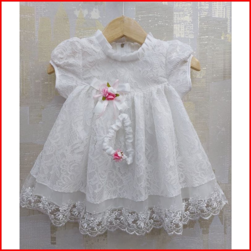 Gaun Bayi Perempuan Putih Set Dress Bayi Putih Gaun Aqiqah Newborngamis Mewah Aqiqah Pure White Baju Setelan Muslim Anak