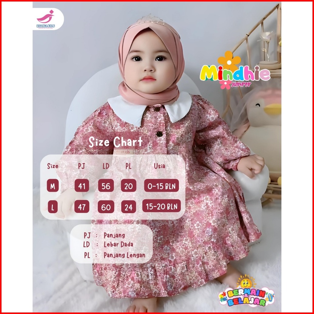 Dress Anak Perempuan Usia 0 Bulan - 2 Tahun Tunik Anak Perempuan Mindhie Series Zalira Kids Original Dress Anak Mini Dre