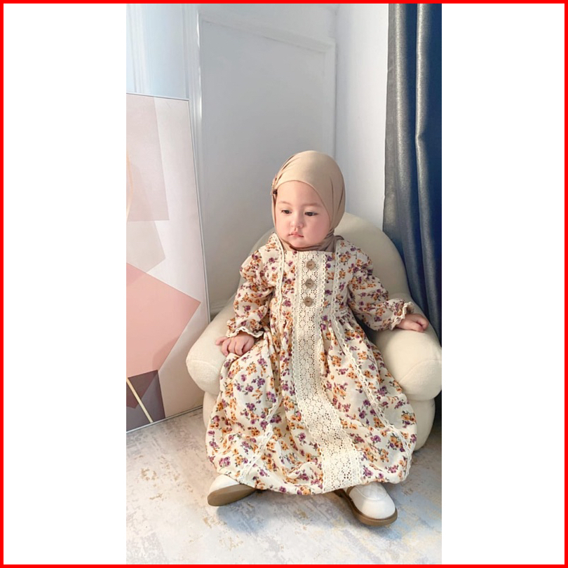 6bln-3thn Gamis Aisy Motif Polos Baby Renda Luxury Busana Muslim Dress Anak Perempuan Gamis Baby Dress Bayi