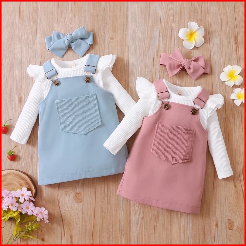 0-2th Setelan Suspender Bayi Balita Perempuan Sale Dress Kodok Pink Biru Ds Kodok