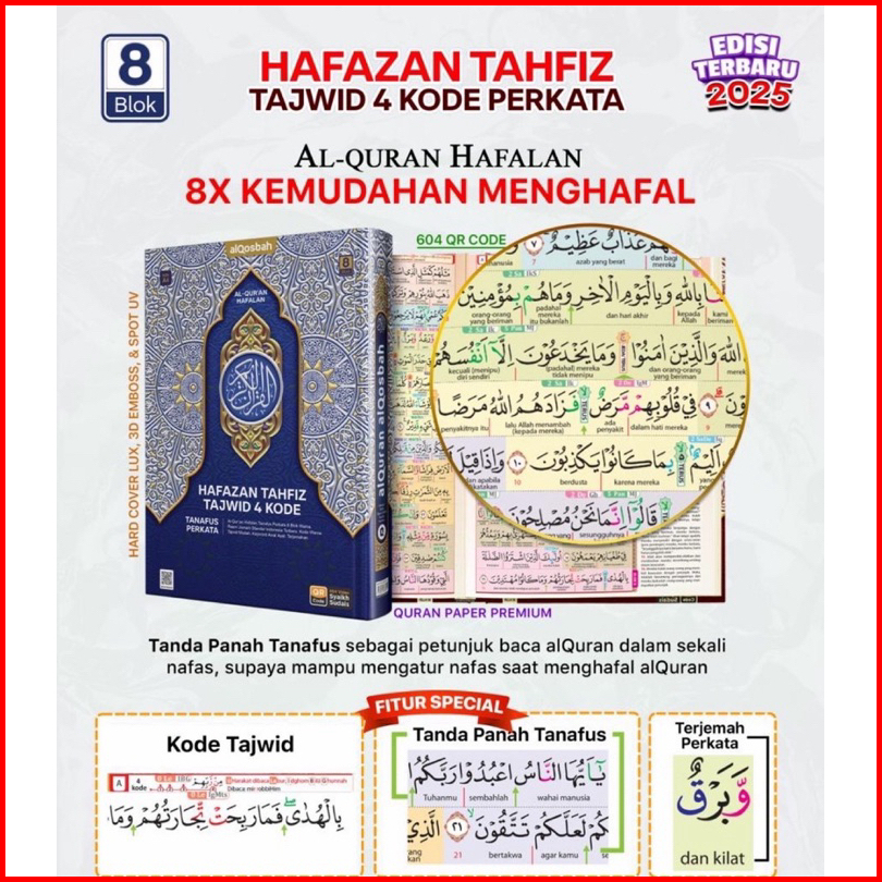 Alquran Hafalan Hafazan 8 Blok Terjemah Perkata Tajwid Warna Alqosbah Ukuran A5 Dan A4