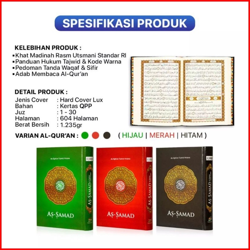 Alquran As Samad A4 Tajwid Warna Tidak Terjemah Alquran Assamad Ukuran Besar A4