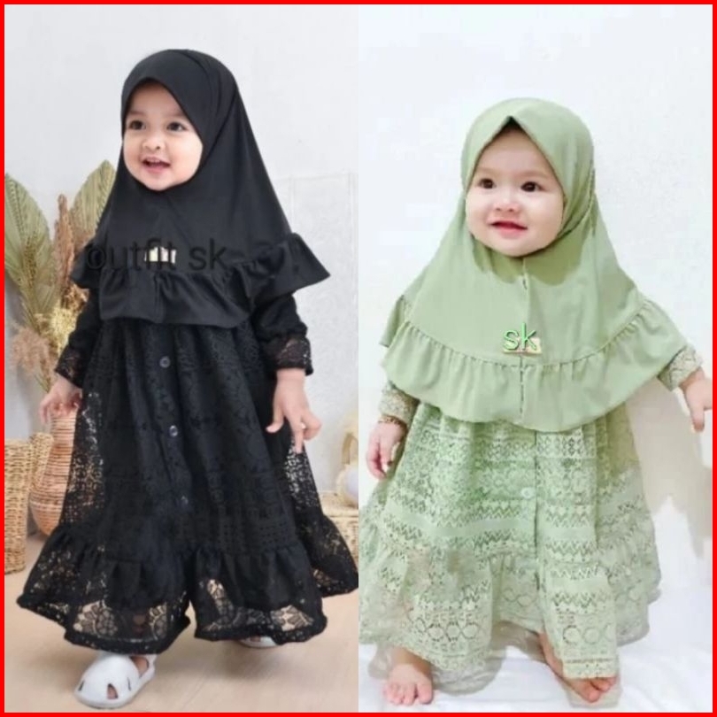 Gamis Anak Bayi Set Hijab Usia O-5 Tahun Gamis Bayi Burkat Malika Terbaru Terlaris Termurah