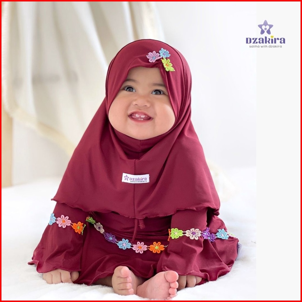 Gamis Bayi 0-2thn Renda Bunga Melati Pelangi Kanaya Jersey Twist Premium Original By Dzakira