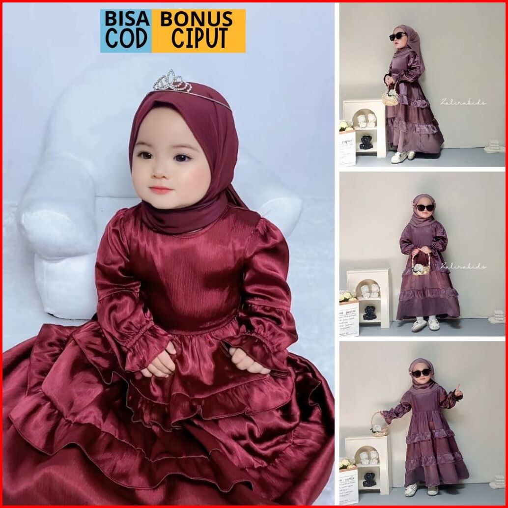 Zalira Kids - Dress Anak Set Jilbab Rabia Gamis Bayi Newborn Perempuan Set Jilbab Usia 0 Bulan - 5 Tahun Gamis Anak Pere